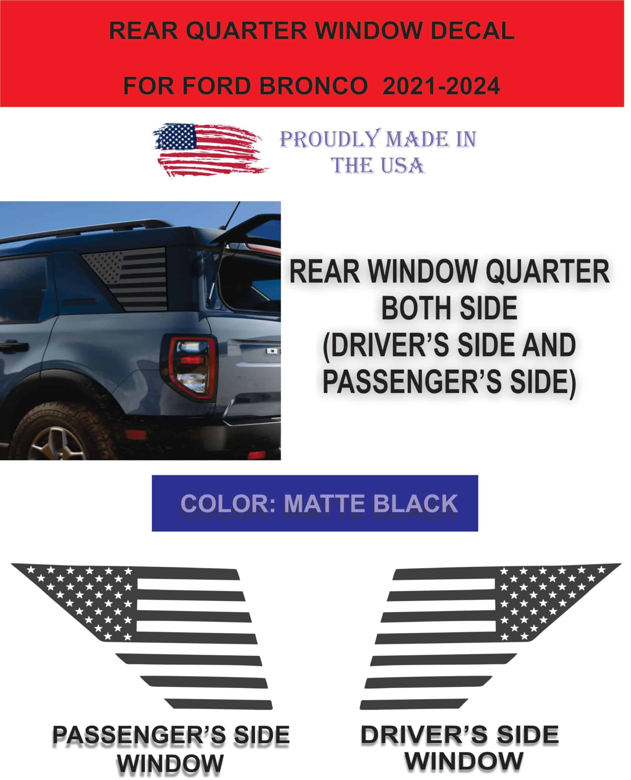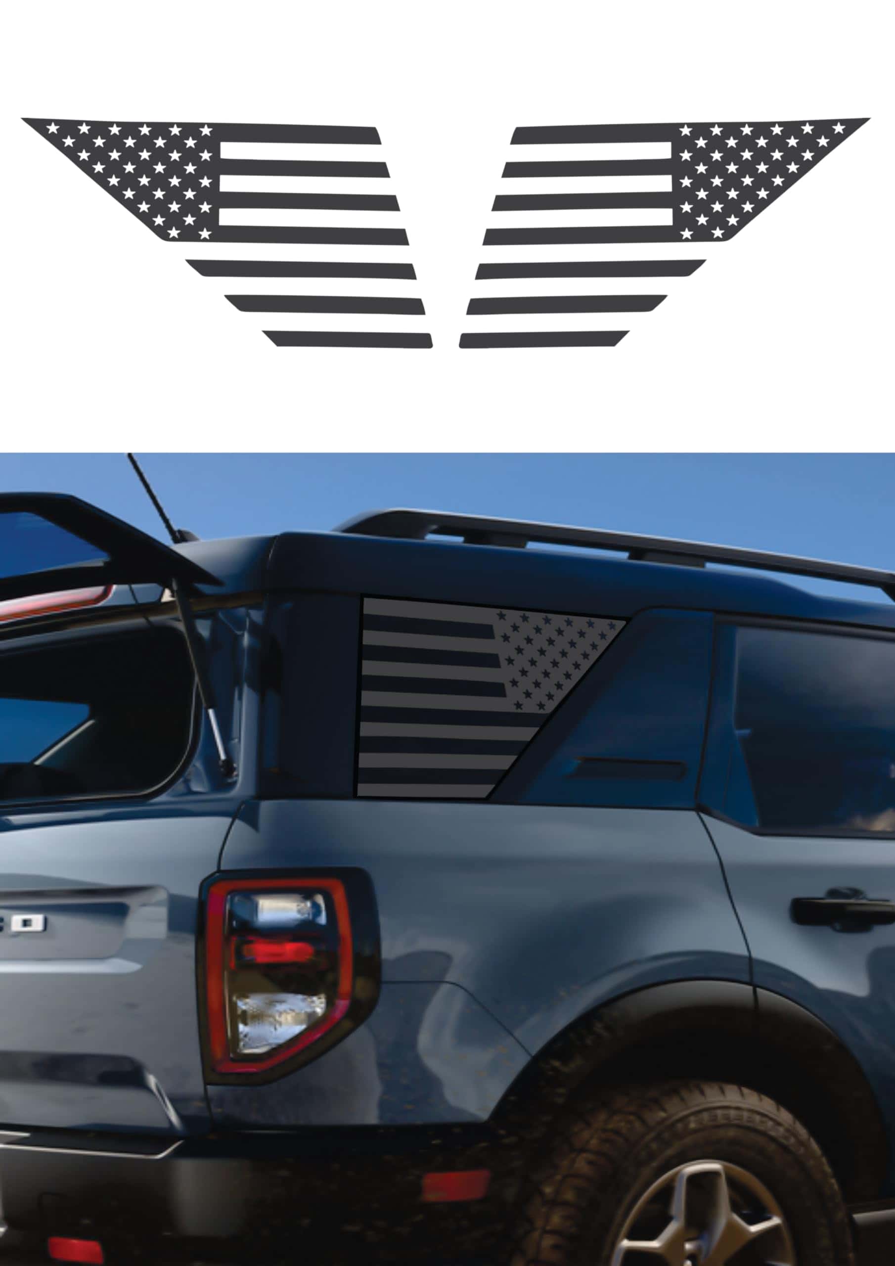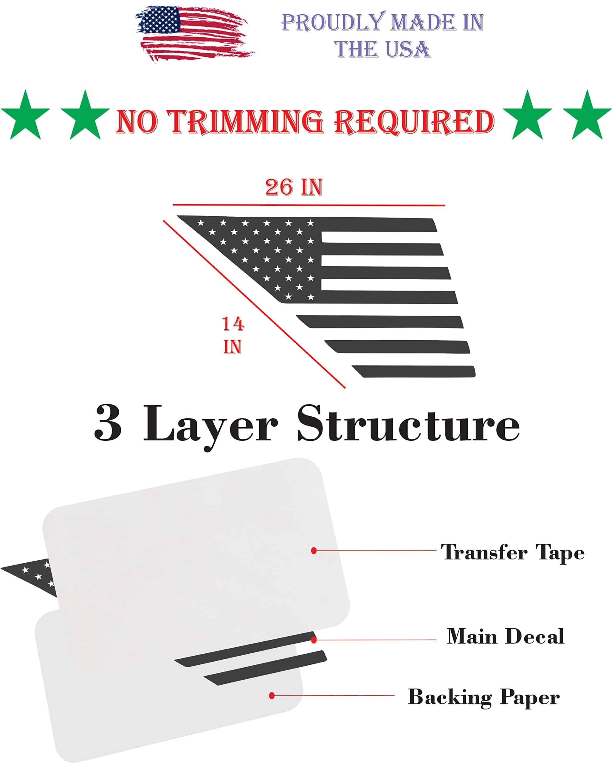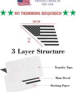 Características: – Calcomanía de bandera estadounidense para ventanas – Vinilo hecho en EE. UU. de alta calidad – Estructura de 3 capas – Seguro para lavado de autos