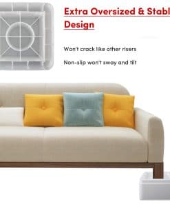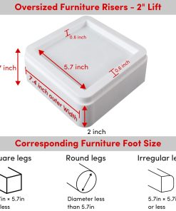 Este elevador de cama ultra resistente de 2 pulgadas está hecho de plástico de alta calidad y resistente para soportar el peso del mobiliario más pesado en tu hogar u oficina. Puede soportar de forma segura hasta 11,000 libras y cuenta con un borde elevado de 0.6″ para mantener el poste firmemente en su lugar. Este conjunto de 4 elevadores de cama de 2 pulgadas puede elevar tu cama a 2 pulgadas o 4 pulgadas (cuando se apilan en elevadores de cama de 4 pulgadas). Tienen una abertura de 5.7 pulgadas de diámetro y pueden acomodar patas de 5.7 pulgadas de diámetro, con una altura total de 2.7 pulgadas y una dimensión inferior de 7.4 pulgadas. Los elevadores de muebles de 2 pulgadas de alta resistencia pueden elevar tu cama desde 2 pulgadas hasta 4 pulgadas y son la solución perfecta para habitaciones pequeñas y dormitorios con espacio de almacenamiento limitado. Agregan la altura adicional que necesita tu cama y añaden espacio de almacenamiento extra debajo de la cama, permitiéndote apilar desechos o contenedores de almacenamiento, y facilitan que el robot barrer el piso limpio debajo de tu cama y mantener la parte inferior de tus muebles libre de polvo y suciedad. El diseño cóncavo de las cuatro esquinas hace que toda la cama se vea más tridimensional y delicada. La estructura de panal en la parte inferior de cada elevador de muebles apilable mejora la estabilidad y garantiza un rendimiento antideslizante. La parte inferior de los elevadores de muebles para sofás es antideslizante y las patas de la cama están firmemente instaladas en las copas cóncavas, lo que no hará que tu cama se incline o se mueva, asegurando que tus muebles se mantengan en su lugar, ya sea un sofá o una mesa. El paquete de 4 elevadores de cama es adecuado para elevar todo tipo de muebles, incluyendo camas, sofás, mesas, sillas, etc. Que se pueden utilizar para muebles de alta resistencia para proteger tus muebles y pisos de daños, compatible con la mayoría de los tamaños. Compatible con muebles, la altura ajustable de los elevadores de muebles también ayuda a mejorar la calidad del sueño y ayuda a aquellos con dolor de espalda.
