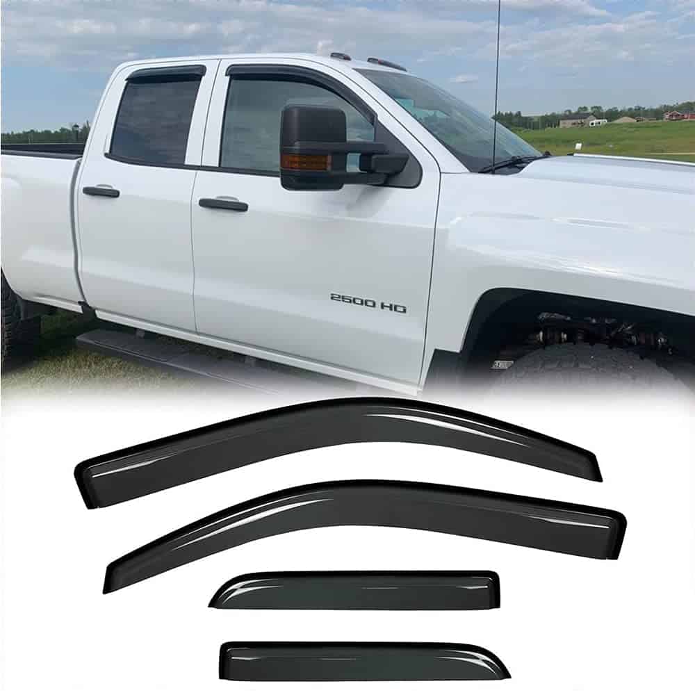 1. AJUSTE: Deflectores de Viento para Ventanas hechos a medida para Chevy Silverado/GMC Sierra 1500 2014-2018, Silverado/Sierra 2500HD/3500HD Doble Cabina Cabina Extendida con 2 Medias Puertas Traseras.