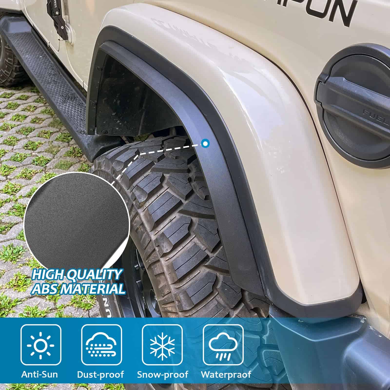 2. MATERIAL DE ALTA CALIDAD – Esta defensa está hecha de material ABS de alta calidad, que es duradero, resistente a altas temperaturas y resistente a la corrosión. Protege las cubiertas de las ruedas del barro, arañazos, arena y otros daños externos.