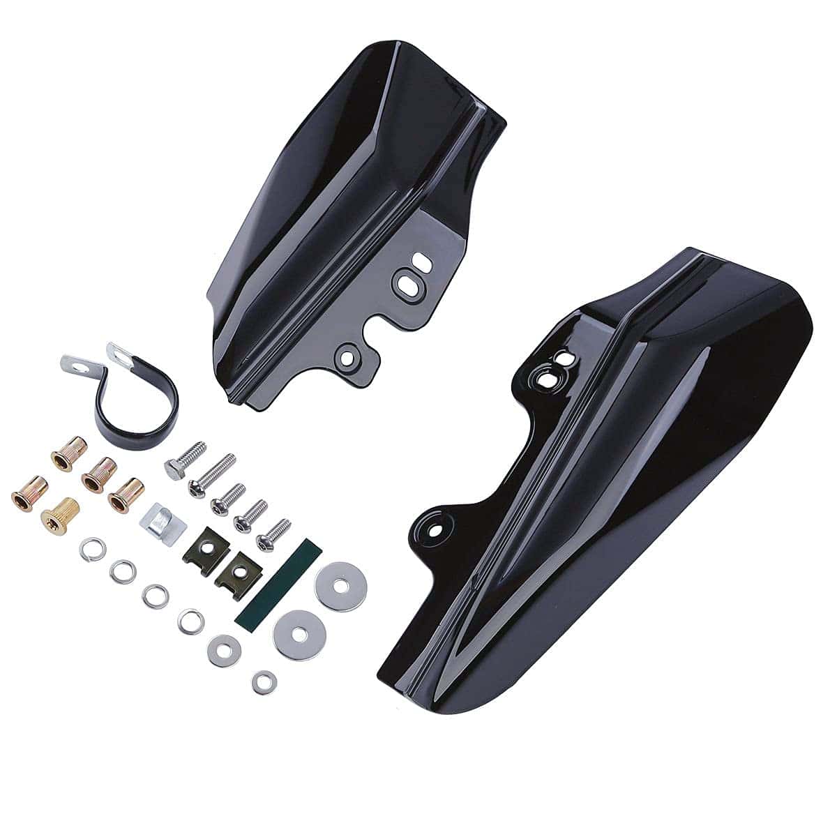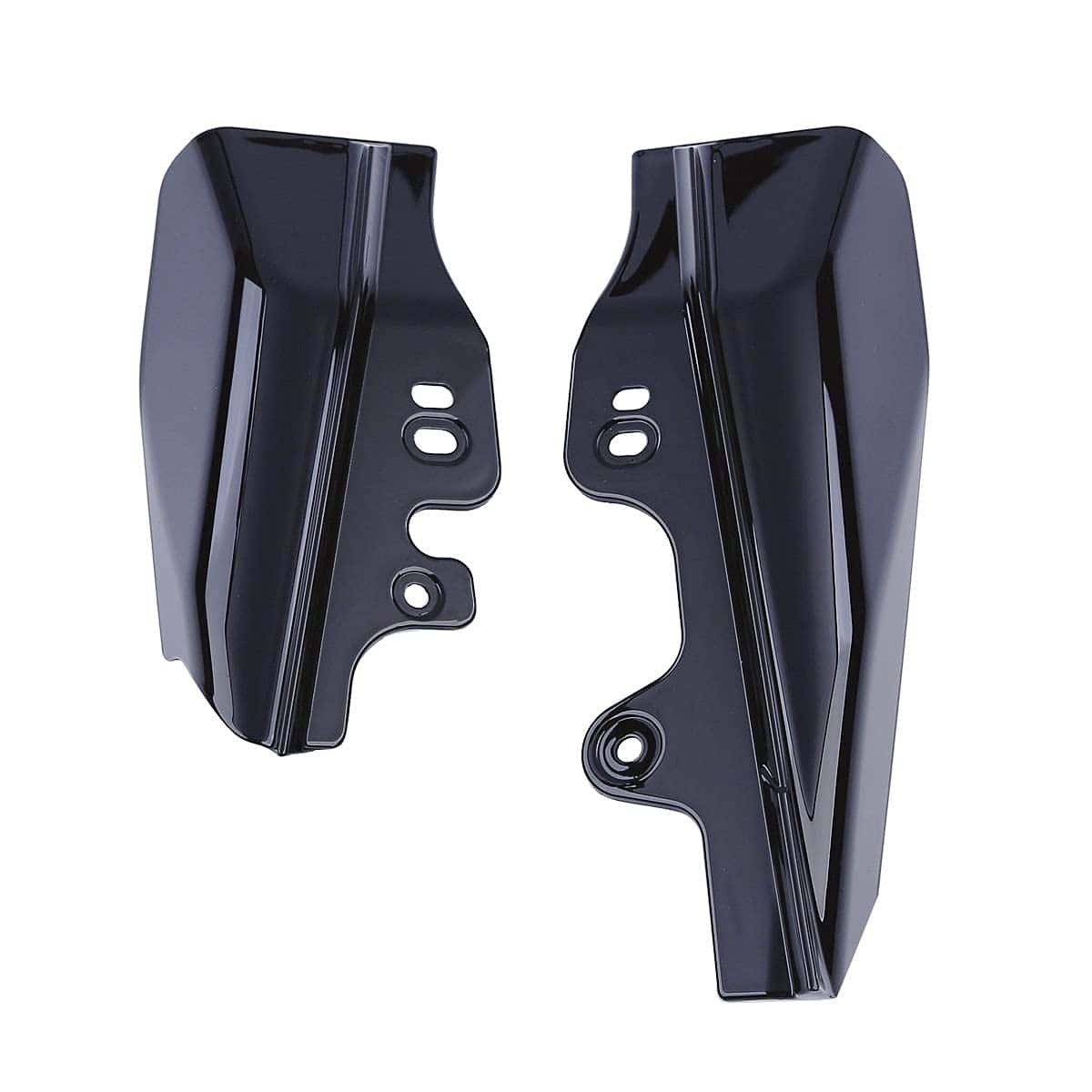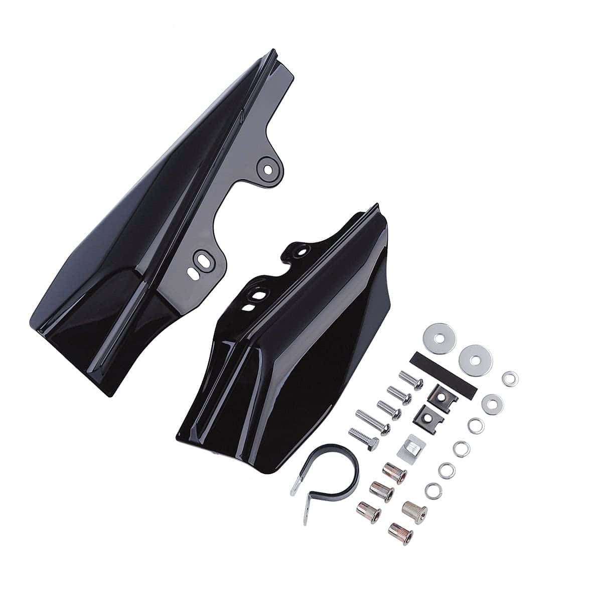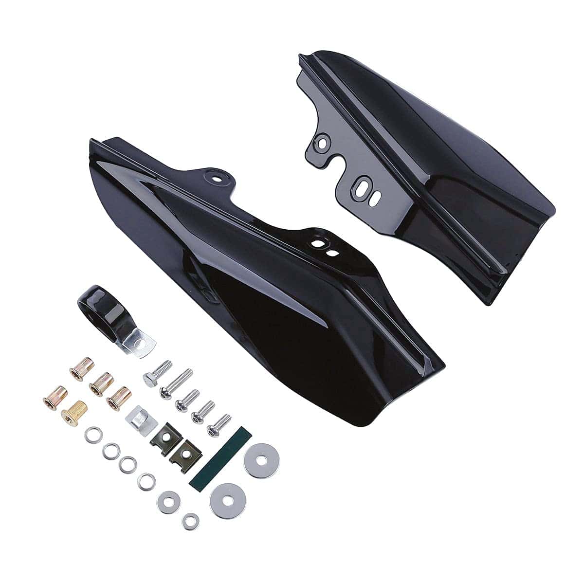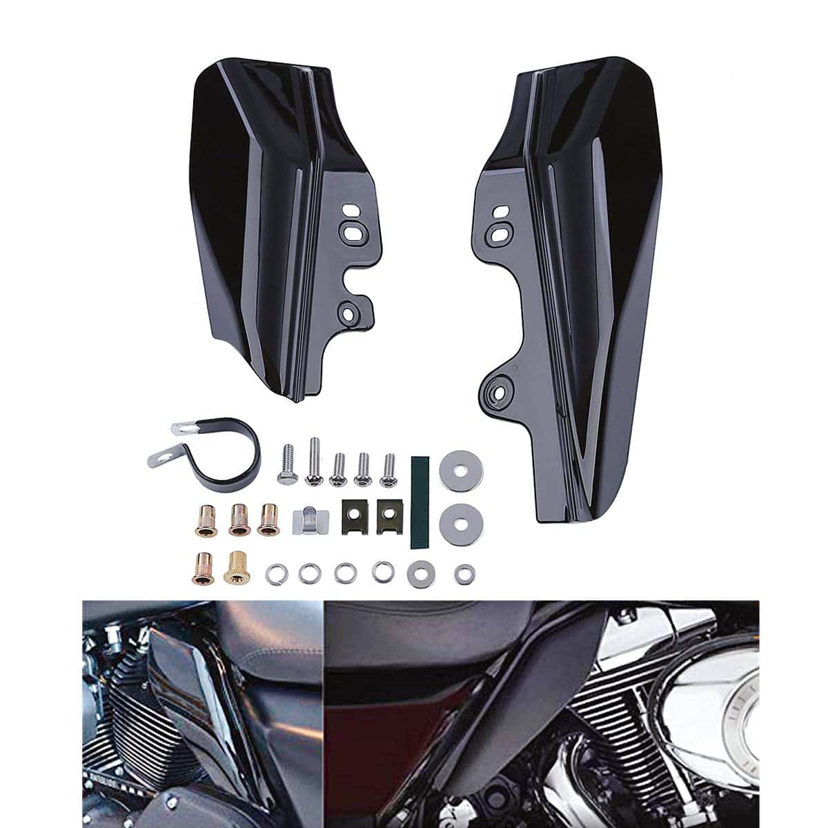 Deflector de aire de marco medio compatible con Harley Davidson Touring Street Electra Glide Road King FLHR FLHX FLTR FLHT 2001-2008. Los deflectores de aire se adhieren al marco debajo del asiento y alejan el calor del conductor para mejorar la comodidad en los paseos calurosos de verano. Material: Plástico ABS. Color: Negro. Se incluye: 1 Par de Abrazaderas para Parabrisas.