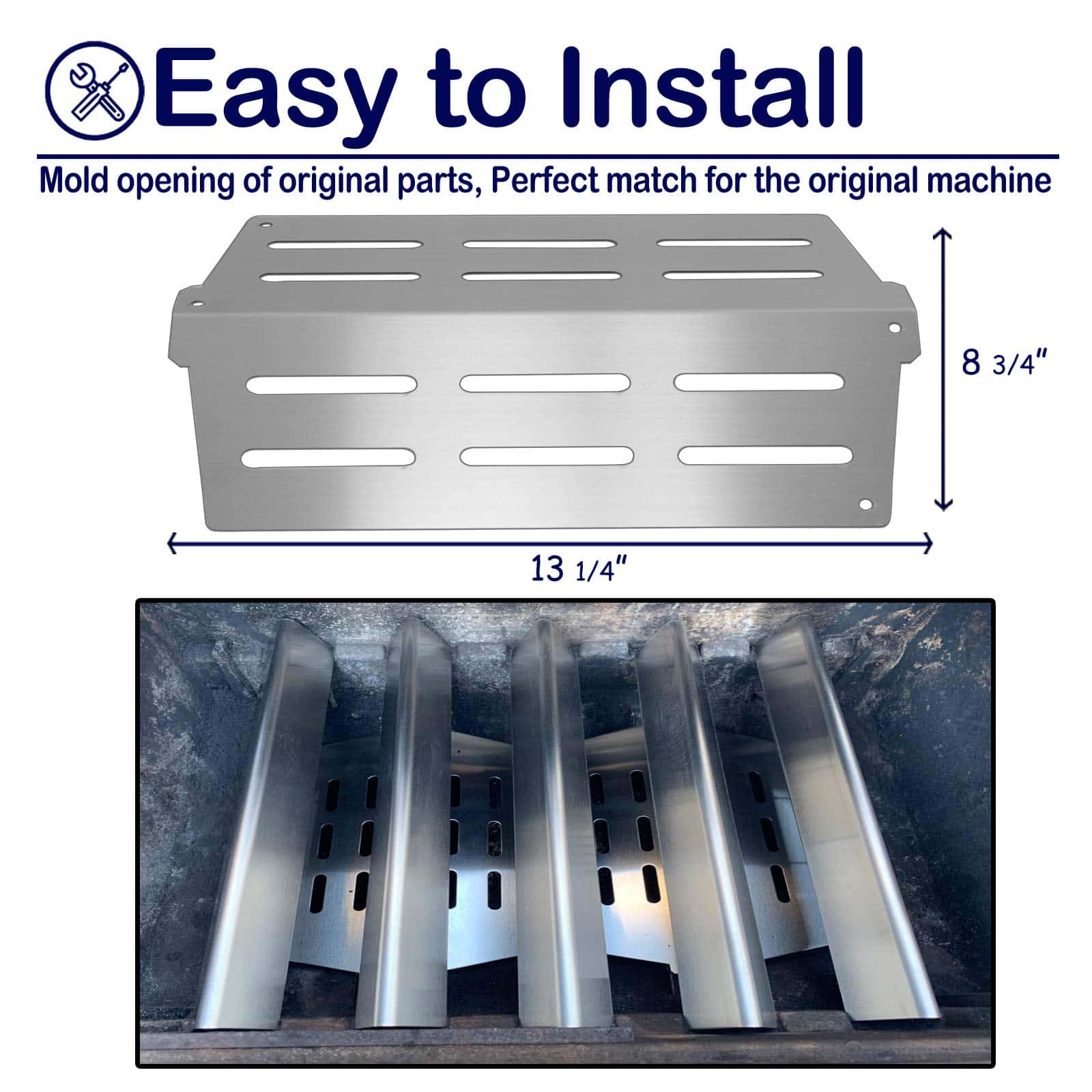 4. CALIDAD SUPERIOR: Acero inoxidable pesado puede garantizar un uso duradero, que no se erosionará a oxidar en cuestión de varios meses, incluso si asas regularmente. Comparado con las partes originales, el material de nuestros protectores térmicos es más resistente, dura más tiempo, es muy bueno para distribuir el calor y proteger los quemadores.