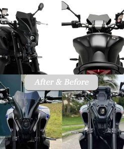 Nombre del Artículo: Cubierta de Parabrisas Touring para Motocicleta para MT09 FZ09 21 22 23 Material: El deflector de aire de parabrisas está hecho de plástico PC, muy duradero en uso. Color: Humo Oscuro, Humo Claro Ajuste: Spoiler del carenado delantero para MT-09 FZ-09 2021 2022 2023 Lista de Paquetes: 1 Pieza de Protector de Visera Deportiva de Parabrisas 1 Juego de Accesorios de Montaje Características: Los deflectores de parabrisas que vale la pena instalar porque pueden cambiar efectivamente la dirección del flujo de aire, reduciendo así la resistencia de la cabeza y el cuerpo y aumentando la experiencia de conducción a alta velocidad, manteniéndote cómodo en largas jornadas por la carretera. Protege tus dispositivos electrónicos y el faro sea cual sea el caso. Ofrece cierta protección a tu costoso sistema de navegación y a tu teléfono. El accesorio del spoiler de parabrisas le da a tu MT 09 un aspecto distintivo y será tu mejor compañero de ajuste. Fácil de instalar y usar sin herramientas complicadas. Consejo Útil: 1. Debido a las diferencias de configuración de luz y resoluciones, es posible que el color del artículo sea ligeramente diferente a las imágenes. 2. Por favor, permita diferencias de 1-3 mm debido a la medición manual. 3. Por favor, confirme si es adecuado para su motocicleta antes de comprarlo.