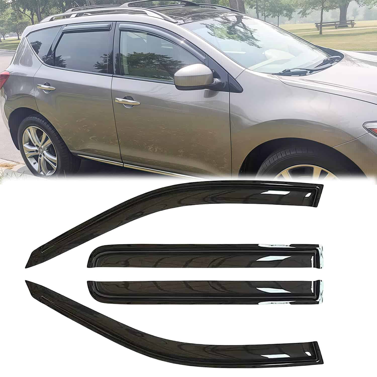 1. AJUSTE: Deflector de ventana lateral hecho a medida para NISSAN MURANO 2009-2014. 2. HAGA EL VIAJE AGRADABLE: Puede conducir con comodidad con nuestros deflectores de ventana lateral, sin preocuparse por el ruido del viento, la nieve fría, las molestas salpicaduras de lluvia, el sol abrasador. 3. HAGA QUE CONDUCIR SEA SEGURO Y AHORRE: Nuestros Guardabarros ayudan a mejorar la ventilación interior y exterior para reducir el empañamiento del espejo y las ventanas para mantener la visibilidad clara y hacer que los paseos sean seguros. Mientras aumenta la circulación del aire permite que el calor interior escape, evitando la necesidad de aire acondicionado y ahorrando combustible. 4. DURADERO Y ATRACTIVO: Nuestro Deflector está fabricado con acrílico reforzado de alta calidad resistente y irrompible, no se doblará, romperá o agrietará. El diseño flexible y aerodinámico de color humo oscuro se elige el mejor para proteger del sol, y también mejora la apariencia de su vehículo. 5. INSTALACIÓN FÁCIL: Nuestros Visores de ventana se montan con cinta de 8M para un agarre extra fuerte, no se necesita perforar y no se interfiere en el movimiento de las ventanas.