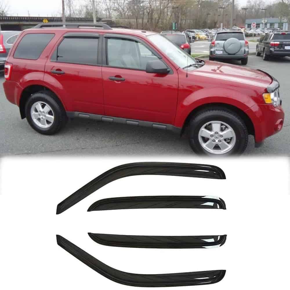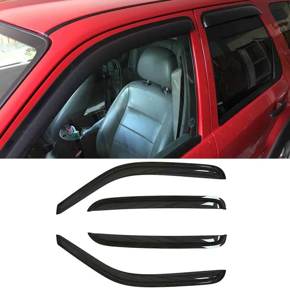 Con el Deflector de ventana lateral resistente al agua Puermto 94059, puedes conducir con comodidad y seguridad en cualquier clima. Este conjunto de 4 protectores de lluvia de repuesto está diseñado específicamente para adaptarse a los modelos Ford Escape 2001-2012, Mazda Tribute 2008-2012 y Mercury Mainer 2005-2011. Los Guardabarros ayudan a mejorar la ventilación dentro y fuera del vehículo, reduciendo el empañamiento de los espejos y ventanas para mantener una visión clara y una conducción segura. Además, al aumentar la circulación de aire, permiten que el calor interior escape, evitando la necesidad de aire acondicionado y ahorrando combustible. Hecho con acrílico de alta calidad resistente y a prueba de golpes, el Deflector no se doblará, romperá ni agrietará, asegurando durabilidad y un aspecto elegante. Su diseño aerodinámico y de color humo oscuro es ideal para la protección solar y mejora la apariencia de su vehículo. La instalación es fácil y rápida, ya que los Visores de ventana se montan con cinta para una adherencia extra fuerte, sin necesidad de perforar y sin interferir con el movimiento de las ventanas.