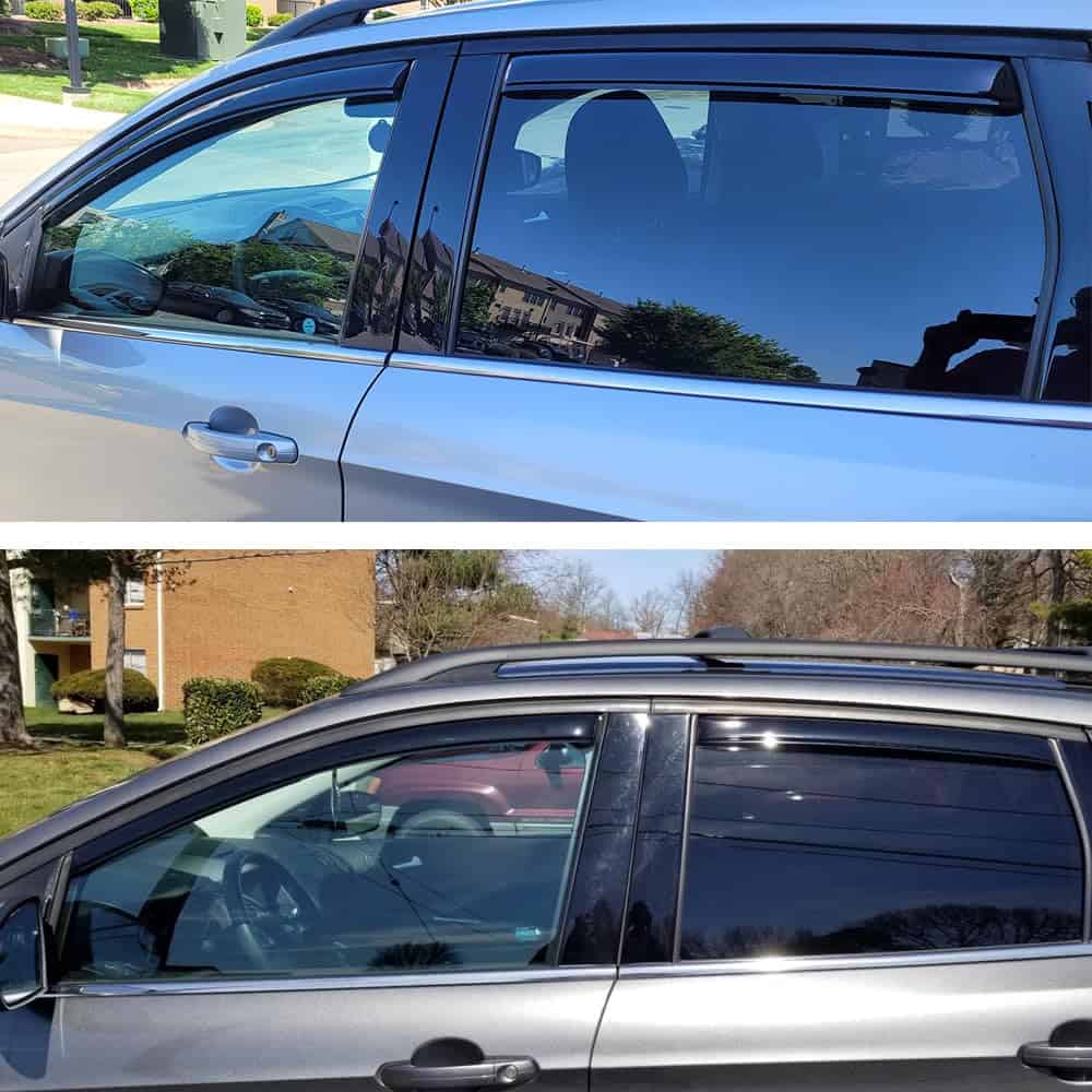 4. Mejora la ventilación y el flujo de aire. Ideal para todo tipo de condiciones climáticas. Nuestros visores de ventana ayudan a mejorar la ventilación dentro de su vehículo para reducir el empañamiento de las ventanas al aumentar la circulación del aire. También elimina los olores no deseados para mantener su vehículo fresco y limpio.