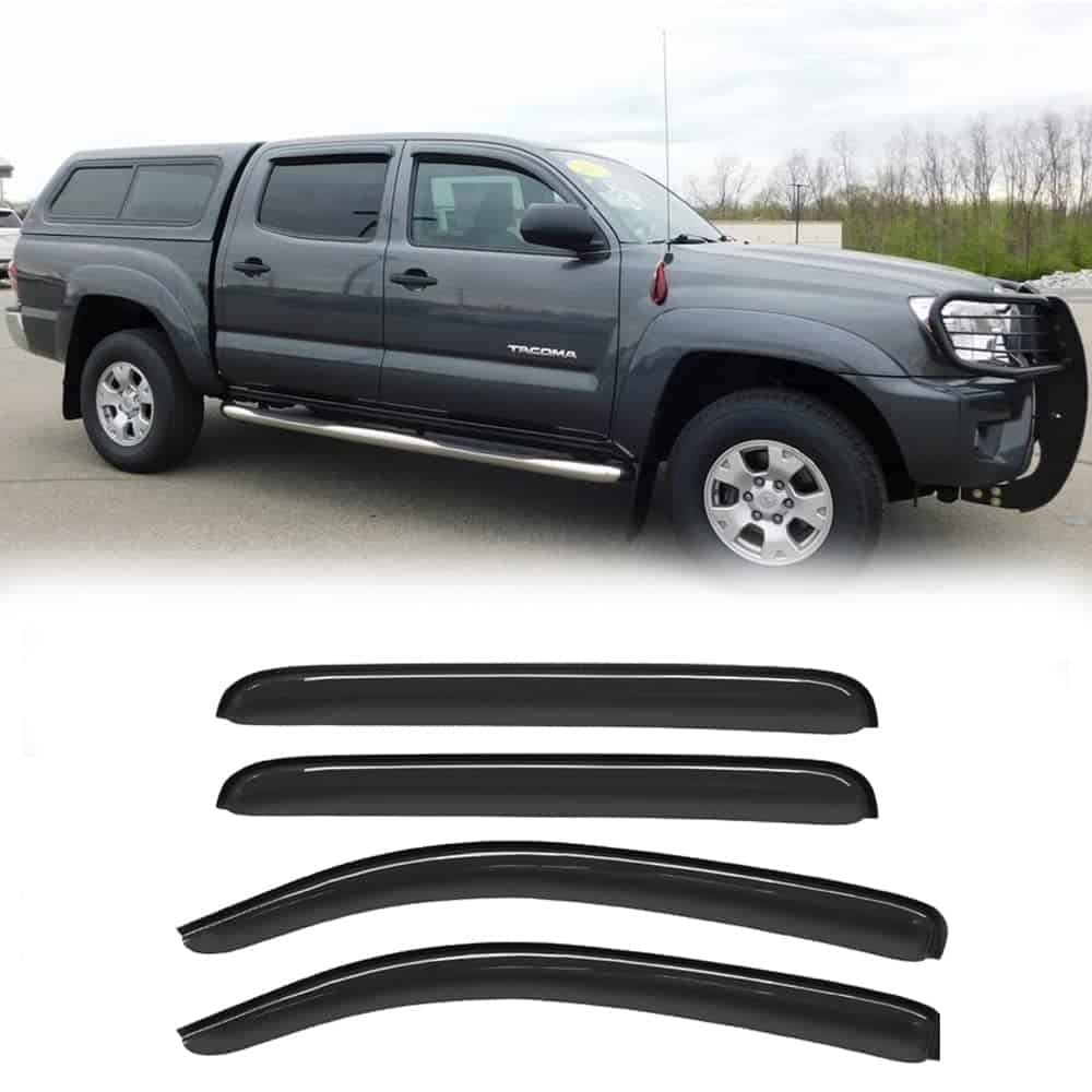 1. Fitment : Deflector de viento para ventana diseñado para Toyota Tacoma Double/Crew Cab 2005-2015 con 4 puertas de tamaño completo.