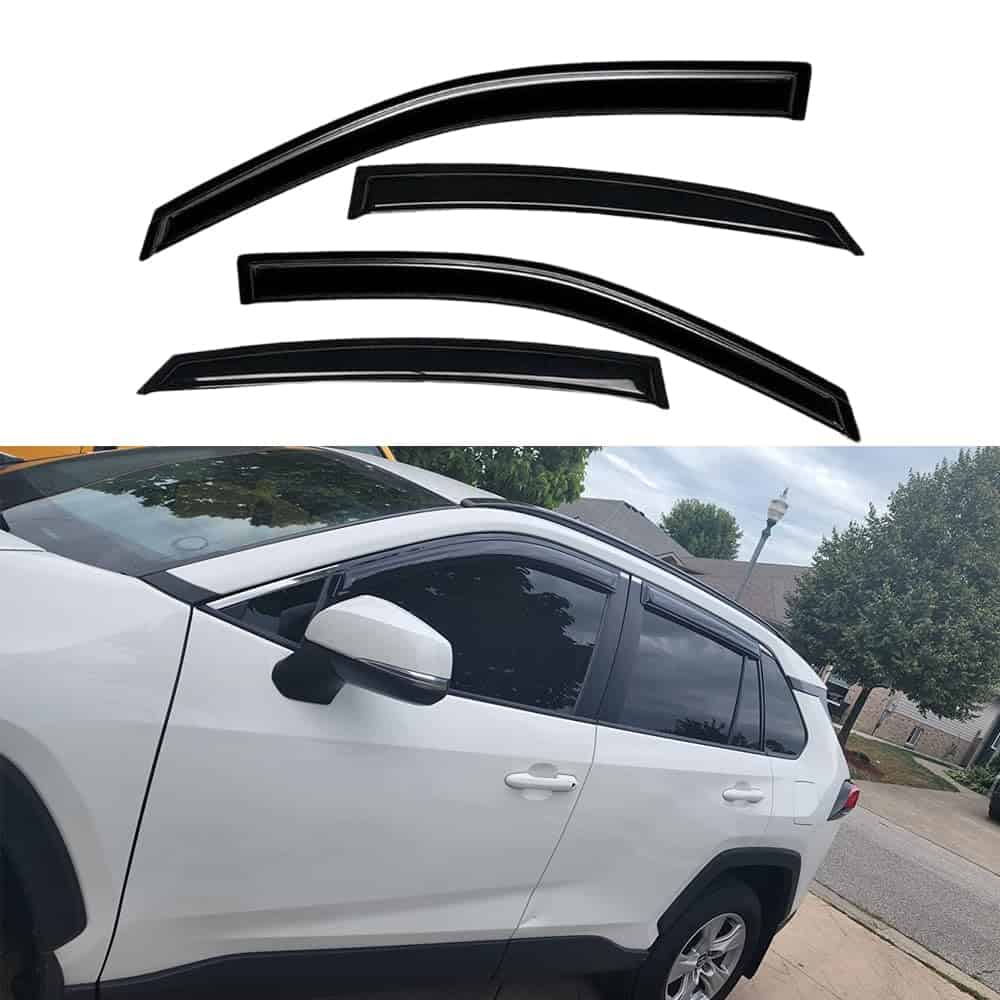 4. Mejora de la ventilación y del flujo de aire. Ideal para todo tipo de condiciones climáticas. Nuestros deflectores de ventanas ayudan a mejorar la ventilación dentro de su vehículo para reducir el empañamiento de las ventanas y aumentar la circulación del aire. También elimina los olores no deseados para mantener su vehículo fresco y limpio.