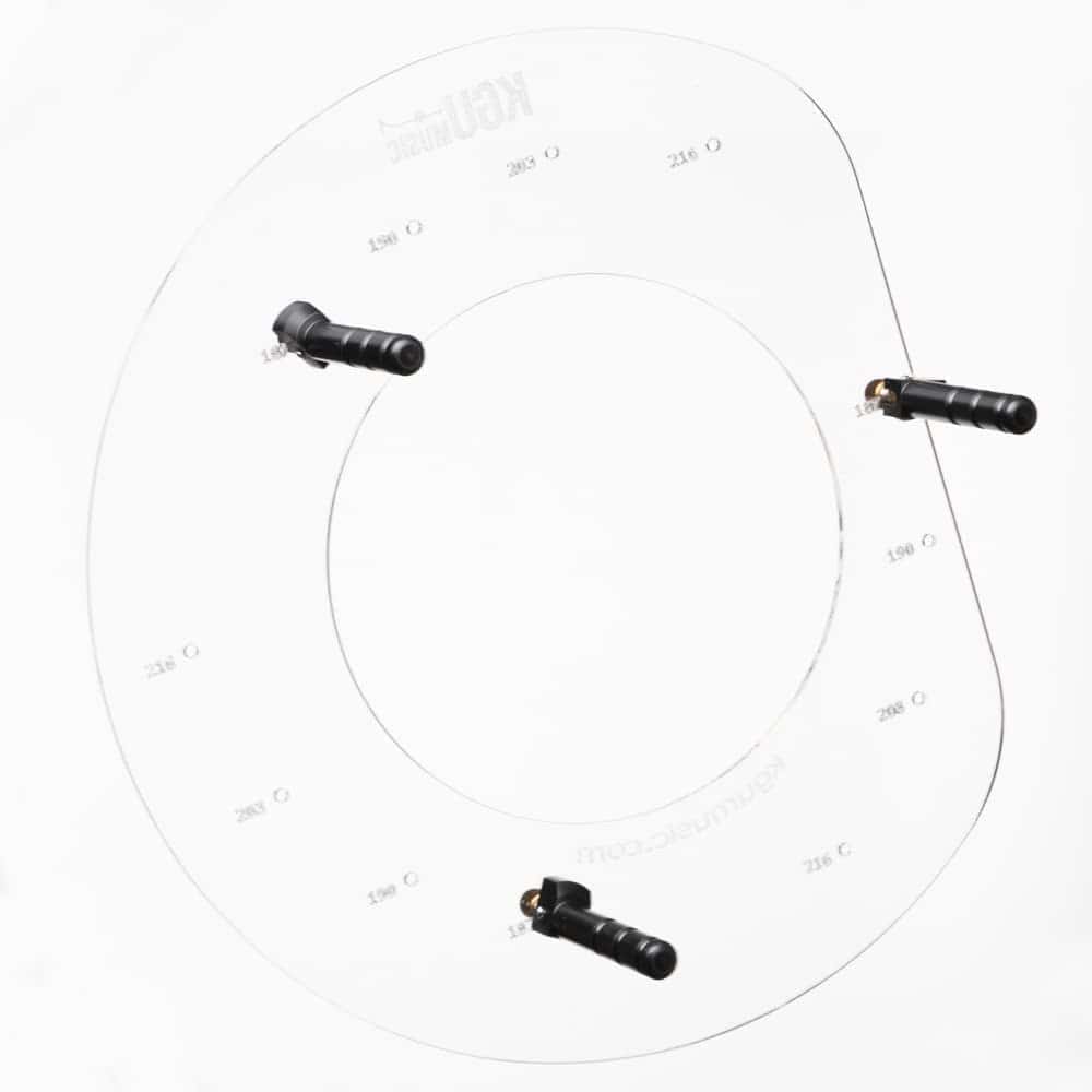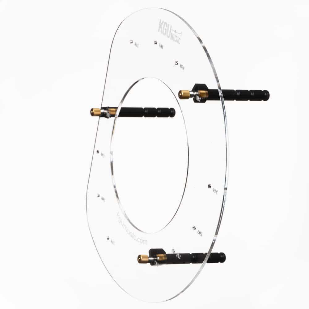 Deflector para trombón por KGU Music. Este deflector de acrílico es la solución perfecta para redirigir el sonido de tu trombón hacia tus oídos en situaciones desfavorables durante conciertos en vivo. Con agujeros para unir fácilmente a trombones con campanas grandes y pequeñas, este deflector se ensambla y desmonta en cuestión de segundos sin necesidad de herramientas adicionales. Fabricado con materiales de alta calidad como disco acrílico, patas de poliéster y mecanismos de latón y acero, este deflector garantiza durabilidad y un rendimiento óptimo. Disponible en opciones de color transparente o negro bajo solicitud del cliente, este deflector no solo mejora la calidad de sonido, sino que también añade un toque de estilo a tu instrumento musical.