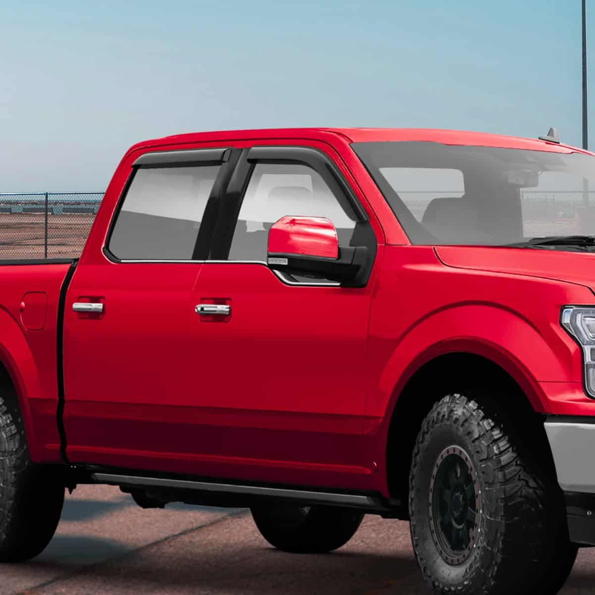 3. Deflectores de Ventana Laterales de Tamaño Completo Este conjunto de 4 piezas incluye deflectores de lluvia para el lado del pasajero y del conductor que crean un aspecto continuo que te protege de los rayos del sol, las gotas de lluvia y el viento mientras conduces con la ventana abajo.