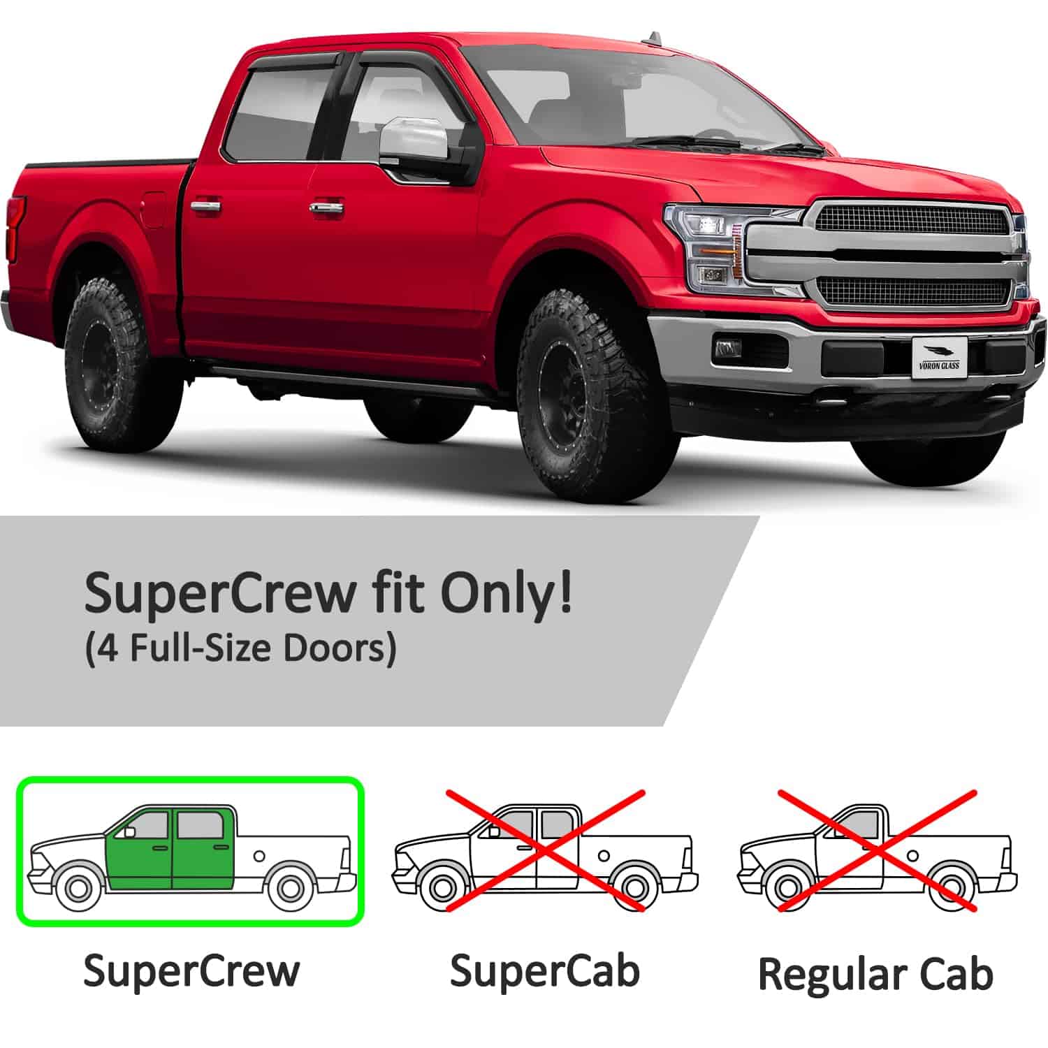 1. ¡Atención! ¡AJUSTE PERSONALIZADO solo para Ford F-150 2015-2025 SuperCrew, 2017-2025 F-150 Raptor SuperCrew, F-250 Super Duty, F-350 Super Duty, F-450 Super Duty, F-550 Super Duty Crew Cab.