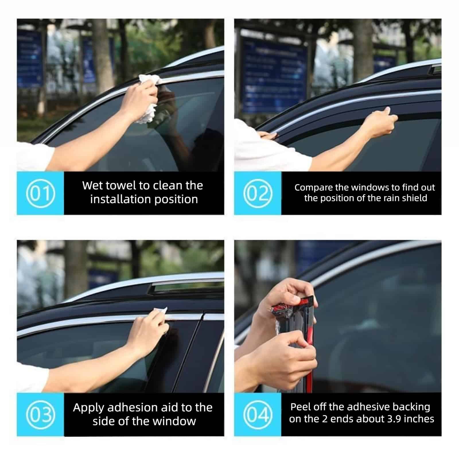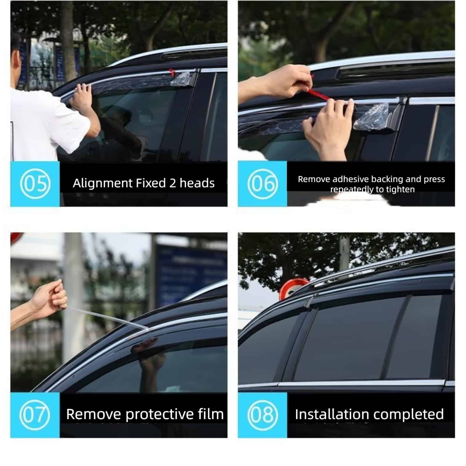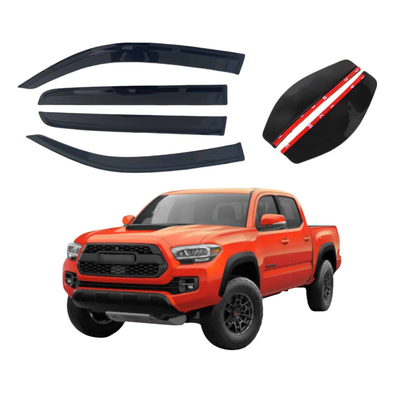 Deflectores de ventana lateral de tamaño completo – Este conjunto de 4+2 piezas incluye cubiertas de lluvia laterales para el lado del pasajero y del conductor y cubiertas de espejo, las cuales crean un aspecto perfecto y te protegen del sol, las gotas de lluvia y el viento mientras conduces con las ventanas abajo. Mejora la ventilación y circulación de aire: los deflectores de ventana son adecuados para todas las condiciones climáticas y ayudan a mejorar la ventilación dentro y fuera de la camioneta, reduciendo el empañamiento del espejo y la ventana al tiempo que aumenta la circulación de aire. También elimina esos olores no deseados para mantener tu vehículo fresco y limpio. Fácil e instalación rápida: se adhiere al marco de la ventana con tiras de cinta adhesiva automotriz 3M preaplicada. No se necesita perforar ni hardware especial. Se monta en minutos sin complicaciones y proporciona protección duradera.