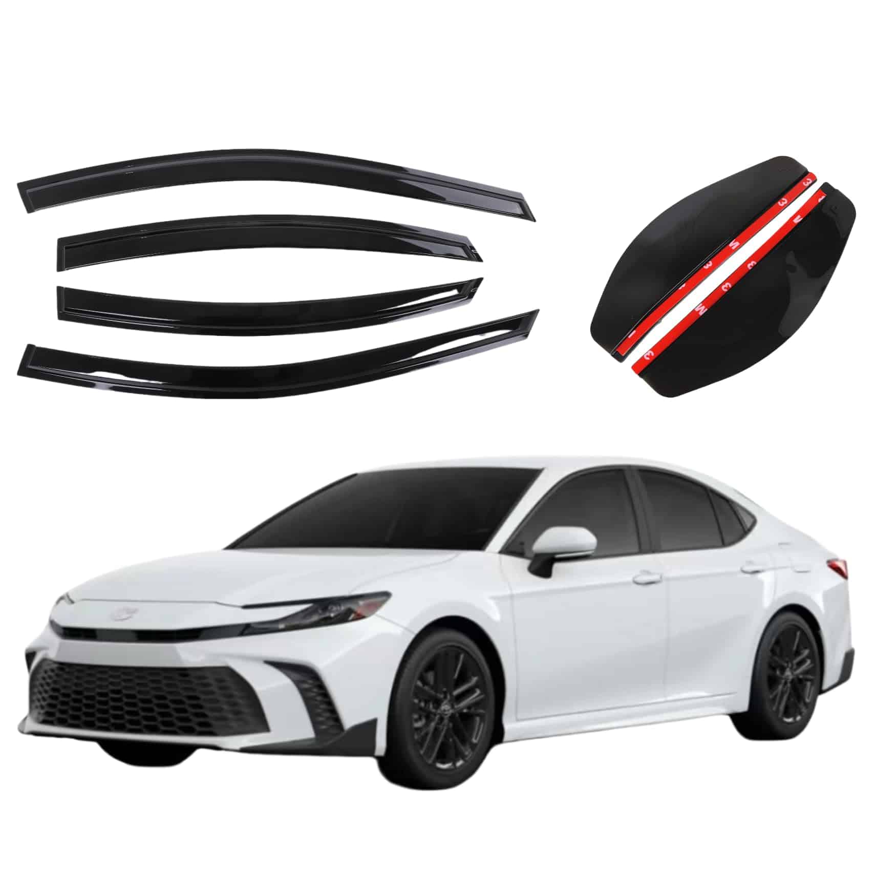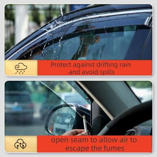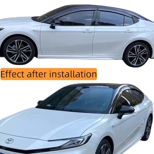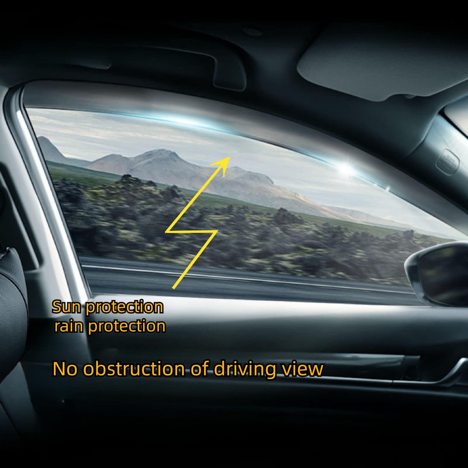 3. Deflectores de ventana laterales de tamaño completo – Este conjunto de 4+2 piezas incluye cubiertas de lluvia para el lado del pasajero y del conductor, y cubiertas de espejos. y tapas de lluvia para el lado del conductor que crean un aspecto continuo y lo protegen del sol, las gotas de lluvia y el viento mientras conduce con las ventanas abiertas.