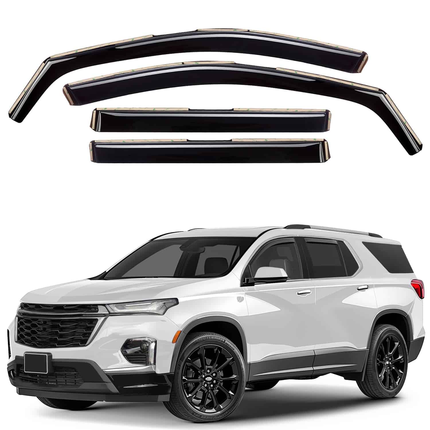 Los deflectores de ventanas originales de GrandWheel están fabricados con policarbonato. Otros usan material acrílico que no puede ser tan flexible y duradero como el policarbonato. Los deflectores de ventanas de GrandWheel están diseñados utilizando tecnología de vanguardia para reducir el ruido, desviar la lluvia y mantener la cabina fresca. El juego de 4 piezas viene con cinta 3M fácil de instalar y un manual de instalación. Especificaciones: – Condición: 100% nuevo; – Compatible con Traverse 2018-2023; – El paquete incluye: 4 deflectores de ventanas (2 delanteros/2 traseros), almohadilla de preparación, manual de instalación; – Color: Tinte negro ahumado; – Material: Policarbonato de alta calidad. Características: – Aire fresco incluso cuando llueve; – Reduce el deslumbramiento del sol; – Fácil instalación; No se requiere taladrar; – Instalación en canal; – Ajuste personalizado.