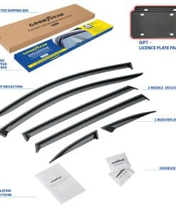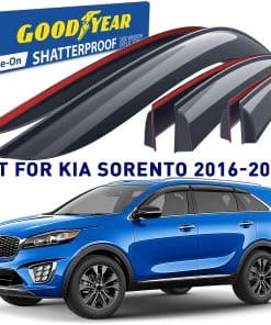 1. ¡Atención! El deflector de ventilación solo es compatible con Kia Sorento 2016-2020. 2. Los deflectores de ventana lateral premium de Goodyear le permiten bajar la ventana en la lluvia, vientos fuertes, nieve y hielo. Estos deflectores de ventilación de ventanilla para la lluvia en los autos evitan que se moje mientras disfruta de aire fresco. Hechos de material irrompible de alta calidad y duradero. La moldura de lluvia no se romperá, agrietará ni astillará. 3. El montaje fácil de cinta adhesiva le permite colocar estos visores de ventana para autos en solo minutos sin necesidad de herramientas o instrucciones complicadas. La cinta súper resistente 3M VHB proporciona una sujeción segura que no se aflojará. El montaje exterior es resistente al agua y duradero en todas las condiciones climáticas. 4. Se eligió un gran color de primera para protección solar. Combina bien con todos los estilos y colores de vehículos. El color de esta pantalla de ventilación se mantiene rico año tras año. Estos son accesorios de auto premium que mejorarán el valor de su SUV además de su disfrute y comodidad diarios. 5. Obtenga un regalo perfecto ahora mismo: se incluyen 2 marcos de matrícula Goodyear en el set. Todos los equipos incluidos, no es necesario perforar. Utilice el kit de montaje completo y siga las instrucciones para una instalación sin errores del deflector de viento. Tenga en cuenta que después de instalar, la ventana debe permanecer cerrada durante 72 horas. El visor de ventana viene en una caja de color Goodyear protegida por una caja de envío marrón.