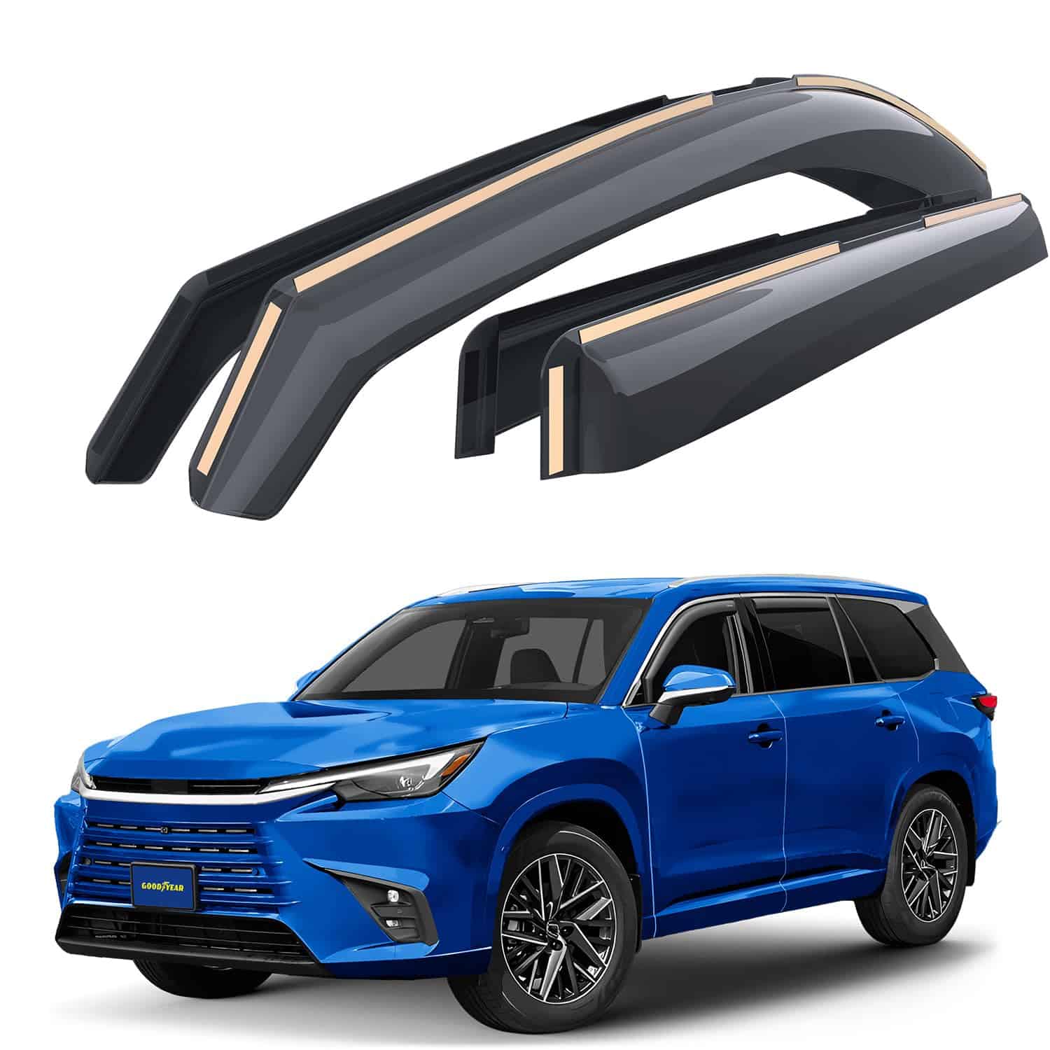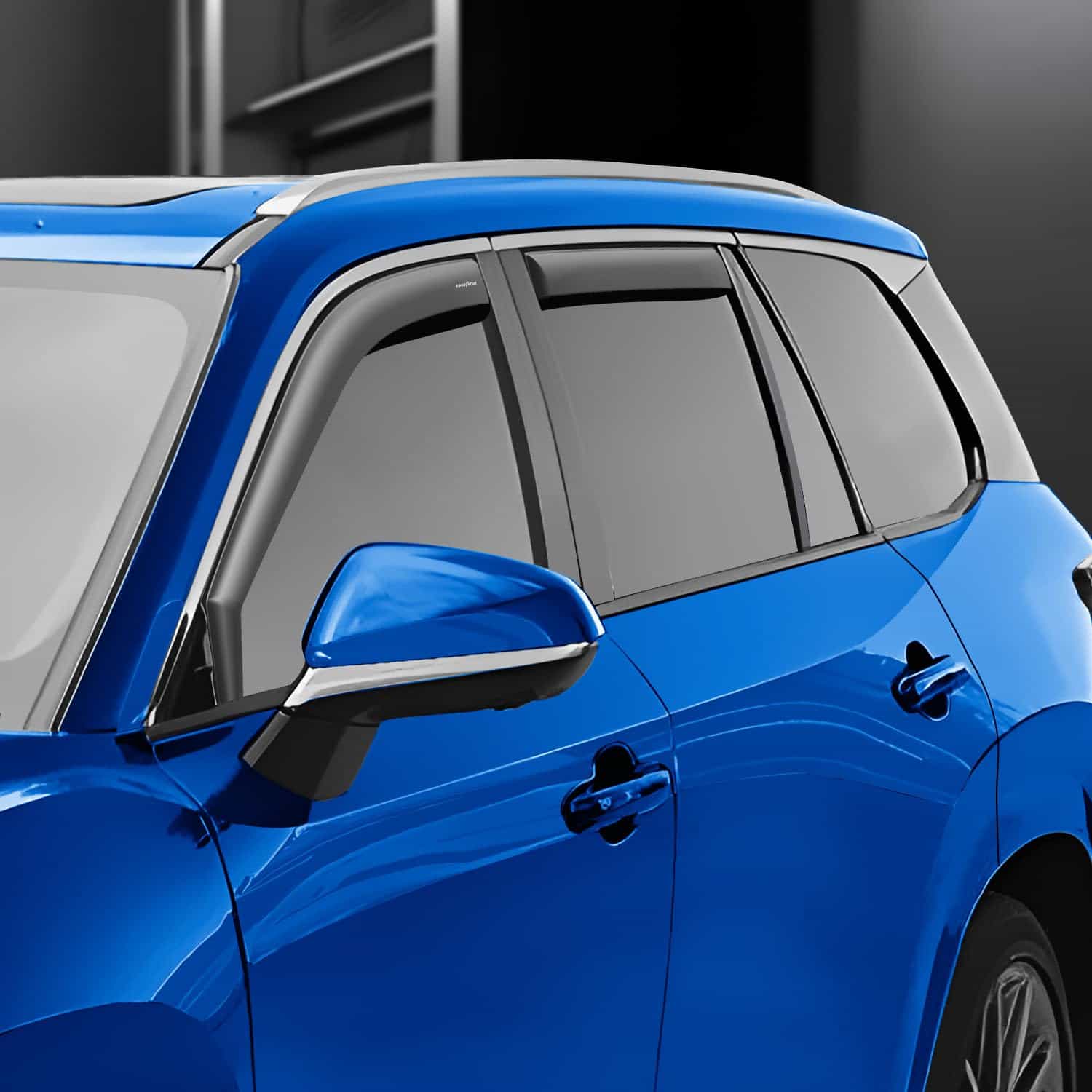 3. La instalación en el canal proporciona un ajuste perfecto y una apariencia elegante para su auto. Asegúrese de que los deflectores en el canal de Goodyear son resistentes al agua y duraderos en todas las condiciones climáticas. Y ciertamente no se caerán en la carretera.