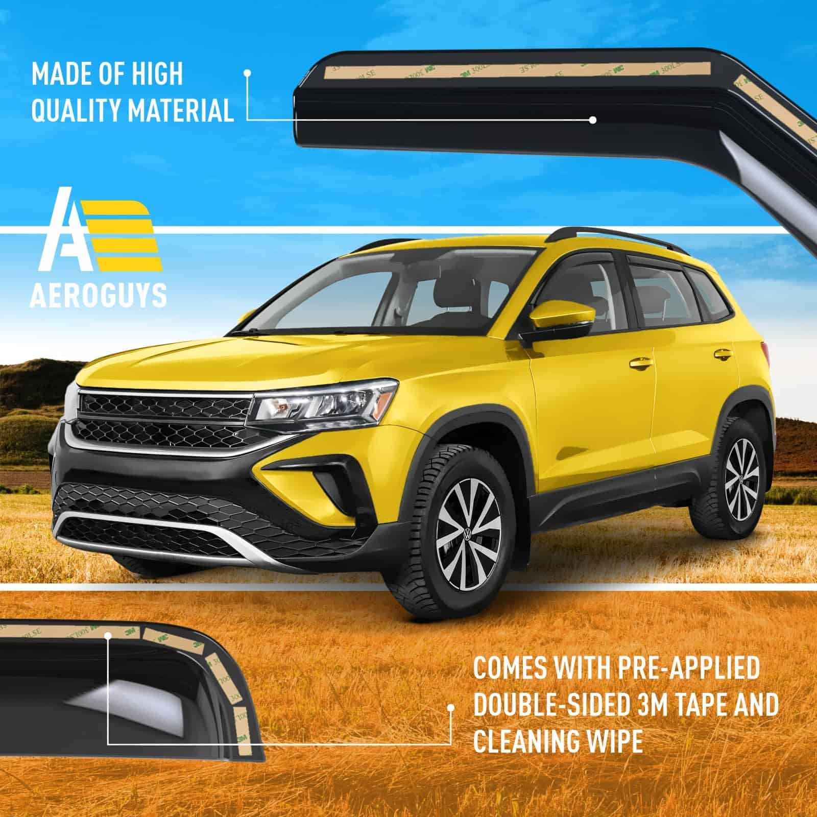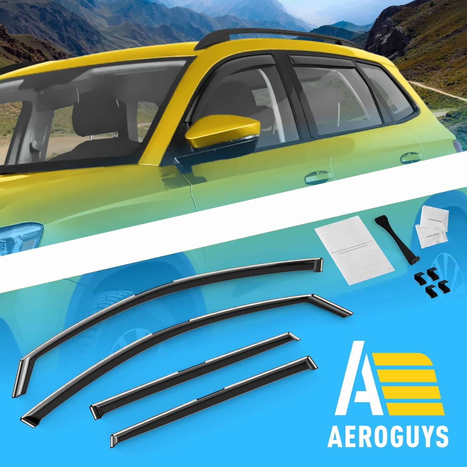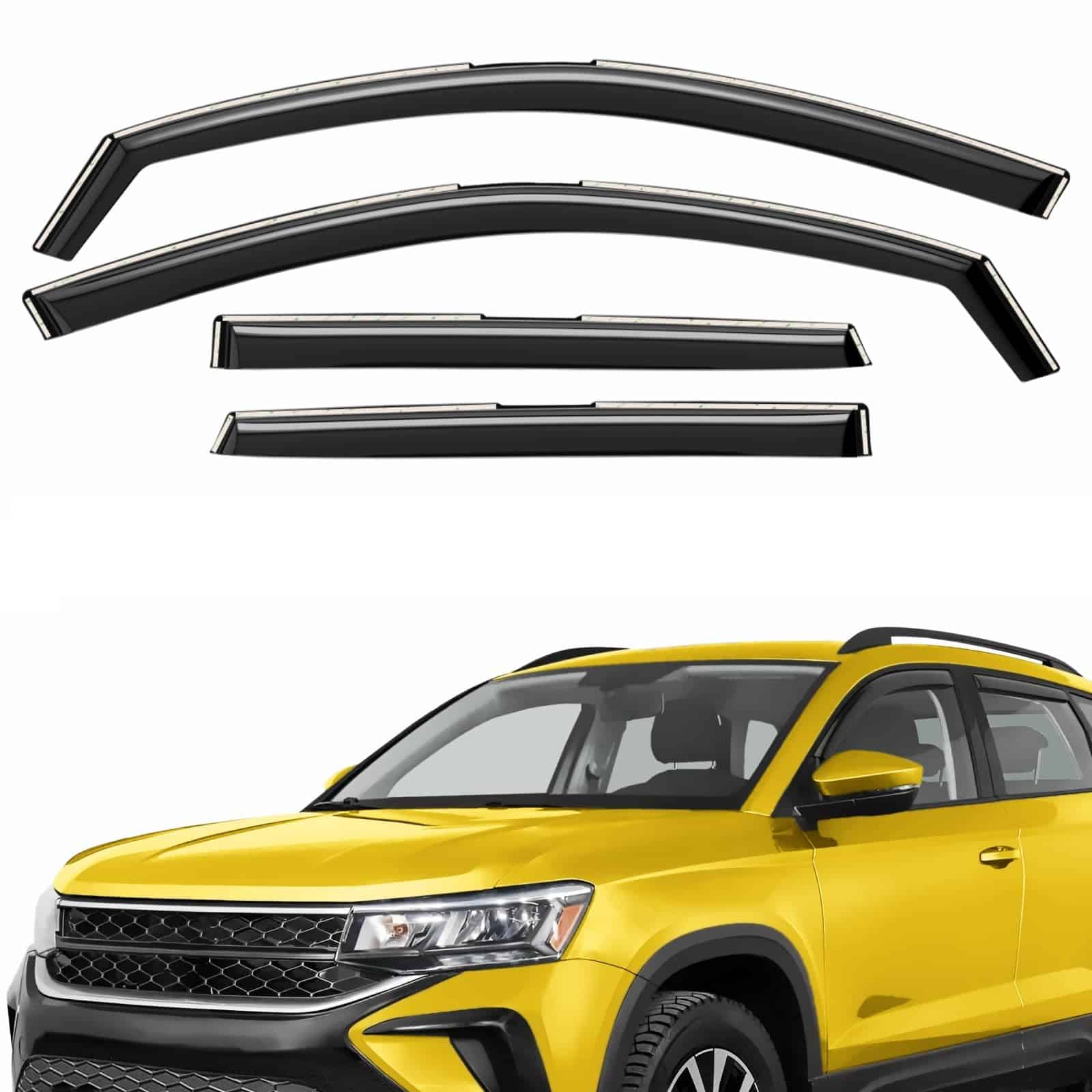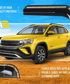 Nuestros visores de ventanas AEROGUYS no solo agregan a la apariencia de su vehículo, sino que tienen un propósito mucho más práctico. Son uno de los accesorios de automóvil más subestimados, pero una vez que los ha usado, sabe la gran diferencia que hacen en su viaje. Nuestros visores de ventanas están fabricados con policarbonato flexible y duradero. Los visores de ventana AEROGUYS están especialmente diseñados utilizando tecnología de vanguardia para desviar la lluvia, el viento, la luz del sol, la nieve y mantener su automóvil enfriado. El set de 4 piezas viene con cinta 3M fácil de instalar y manual de instalación. CARACTERÍSTICAS DEL PRODUCTO: – Condición: 100% nuevo; – Ajuste personalizado: para Taos 2022-2025; – El paquete incluye: 4 deflectores de viseras de ventana (2 delanteros/2 traseros), paño para limpieza, manual de instalación; – Color: Tinte negro ahumado; – Material: Policarbonato duradero de alta calidad. Características: – Aire fresco incluso mientras llueve; – Reduce el deslumbramiento del sol; – Le da a su vehículo un aspecto mejorado y fresco; – Amigable con el lavado de autos; – Fácil instalación en canal; No se requiere perforación; – Las viseras están aseguradas con cinta 3M. Tenemos viseras para la mayoría de los modelos de automóviles. Elija la marca y modelo de su automóvil y el tipo de visera que desea. ¡Ofrecemos una garantía de satisfacción del 100%! ¡Ordene ahora y obtenga nuestros protectores de lluvia de ventana de inmediato!