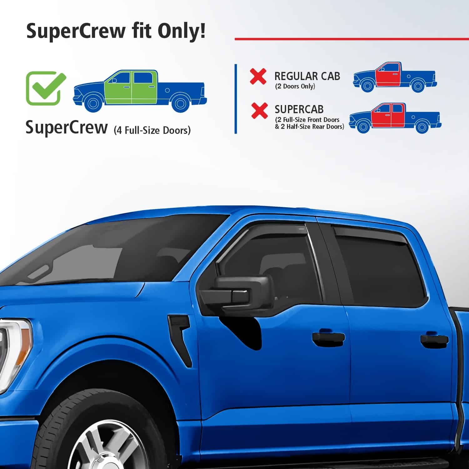 1. Atención! Deflector de ventilación personalizado que se ajusta únicamente para Ford F150 2021-2025 SuperCrew, Ford F-250, F-350, F-450, F-550 Super Duty 2024-2025 Crew Cab.