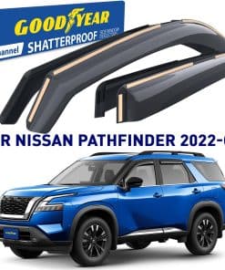 3. La instalación en el canal proporciona un ajuste perfecto y un aspecto elegante para su automóvil. Asegúrese de que los deflectores en canal de Goodyear sean resistentes al agua y duraderos en todas las condiciones climáticas. Y ciertamente no se caerán en la autopista.