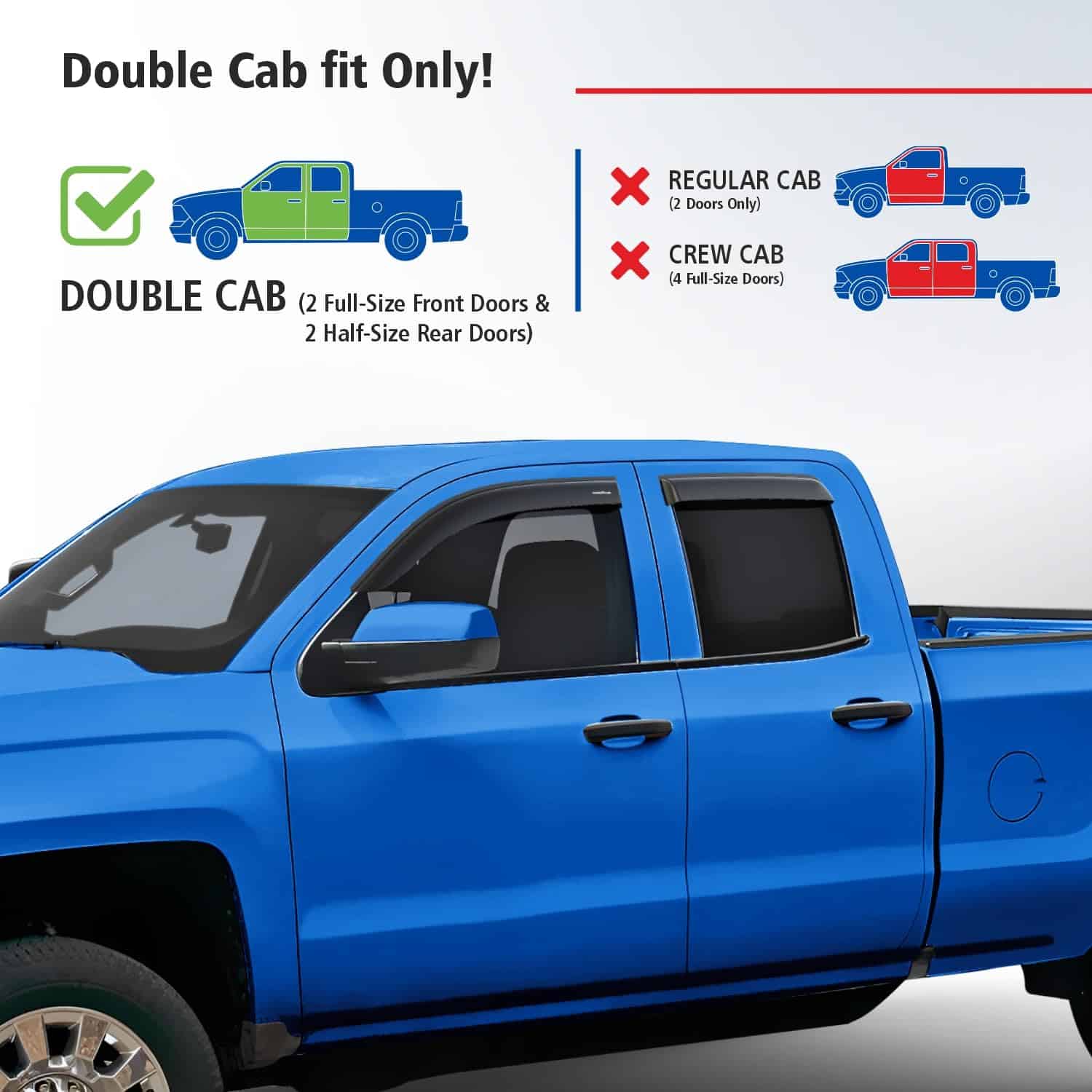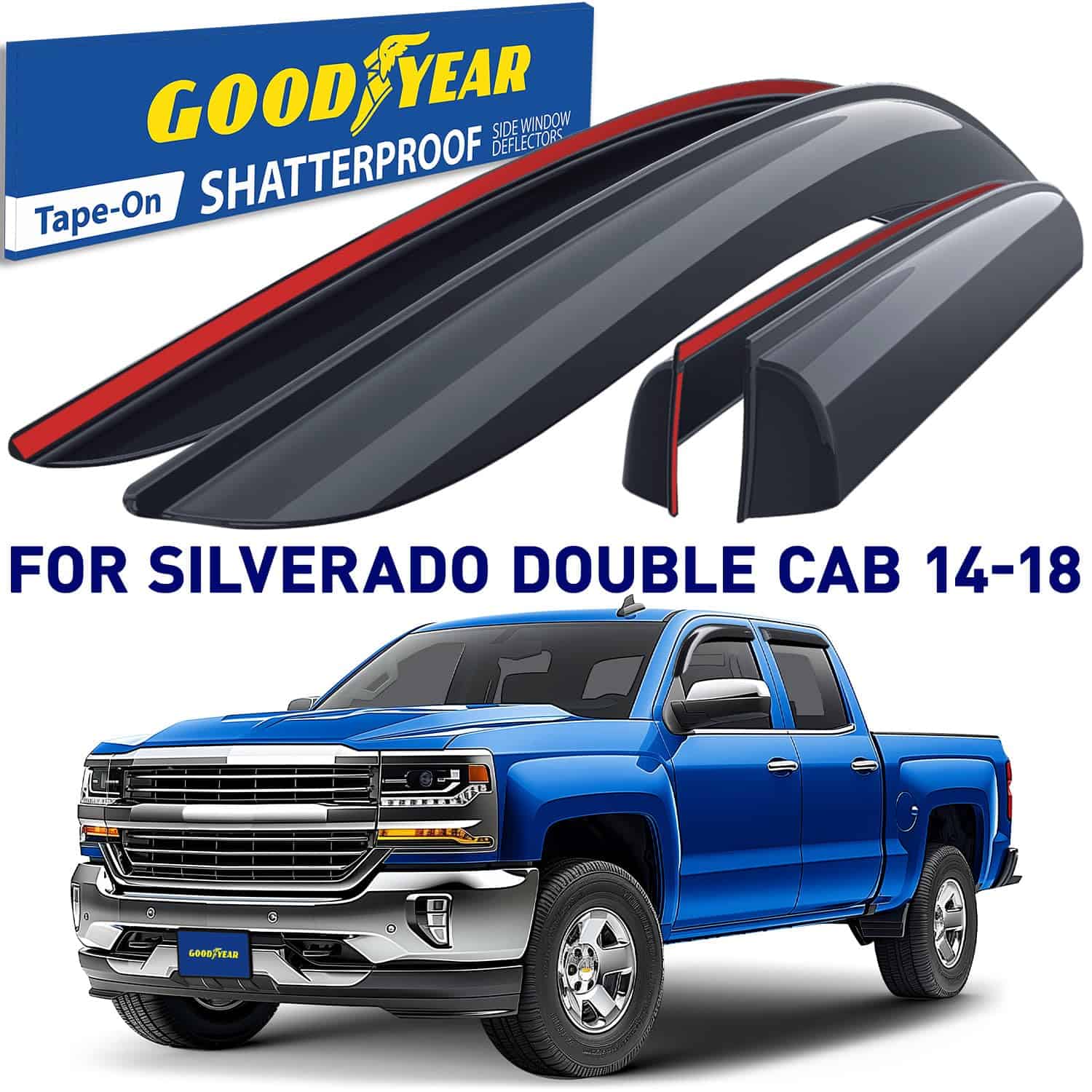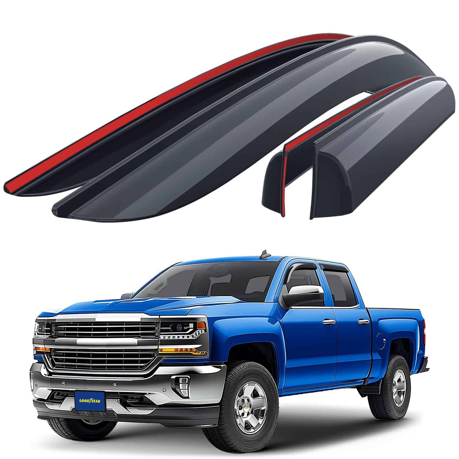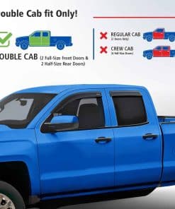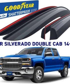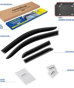 2 marcos de placa de Goodyear incluidos en el set: Deflectores de ventana irrompibles Goodyear para Chevrolet (Chevy) Silverado/GMC Sierra 2014-2018 Doble Cabina, Visera de Ventilación, Accesorios para Camionetas, Guardabarros de Lluvia con Cinta Adhesiva, Viseras de Ventana, Deflector de Ventilación, 4 piezas – GY003281. El deflector de ventanas solo se ajusta a Chevrolet Silverado 1500 Doble Cabina 2014-2018, Chevrolet Silverado 2500 Doble Cabina 2015-2019, Chevrolet Silverado 2500HD Doble Cabina 2015-2019, Chevrolet Silverado 3500HD Doble Cabina 2015-2019, GMC Sierra 1500 Doble Cabina 2014-2018, GMC Sierra 2500HD, 3500HD Doble Cabina 2015-2019, GMC Sierra 1500 Limited Doble Cabina 2019, Chevrolet (Chevy) Silverado 1500 LD Doble Cabina 2019. Los deflectores de ventanas laterales premium de Goodyear te permiten bajar la ventana en la lluvia, vientos fuertes, nieve y hielo. Estos accesorios para camionetas te mantienen seco mientras disfrutas de aire fresco. Hechos de material irrompible de alta calidad y duradero. El visor de ventana no se agrieta, rompe o astilla. El ensamblaje fácil con cinta adhesiva te permite sujetar estos visores de ventana para autos en tan solo minutos sin herramientas ni instrucciones complicadas. La cinta súper fuerte 3M VHB proporciona un agarre seguro que no se suelta. El montaje exterior es resistente al agua y duradero en todas las condiciones climáticas. Gran color elegido el mejor para protección solar. Combina bien con todos los estilos y colores de vehículos. Este color de deflector de viento se mantiene rico año tras año. Este es un accesorio para automóvil premium que mejorará el valor de tu camioneta, así como tu disfrute y comodidad diarios. Obtén un regalo perfecto en este momento – 2 marcos de placa de Goodyear están incluidos en el set. Sin necesidad de herramientas, simplemente despega y coloca estos visores de ventanas contra la lluvia. Incluimos toallitas desengrasantes para hacer el trabajo rápido. Este protector de ventanilla lateral es un gran regalo de cumpleaños o presente navideño para cualquier persona a la que le guste conducir con la ventana abajo. Los deflectores de ventanilla lateral vienen en una caja de color Goodyear protegida por una caja de envío marrón.