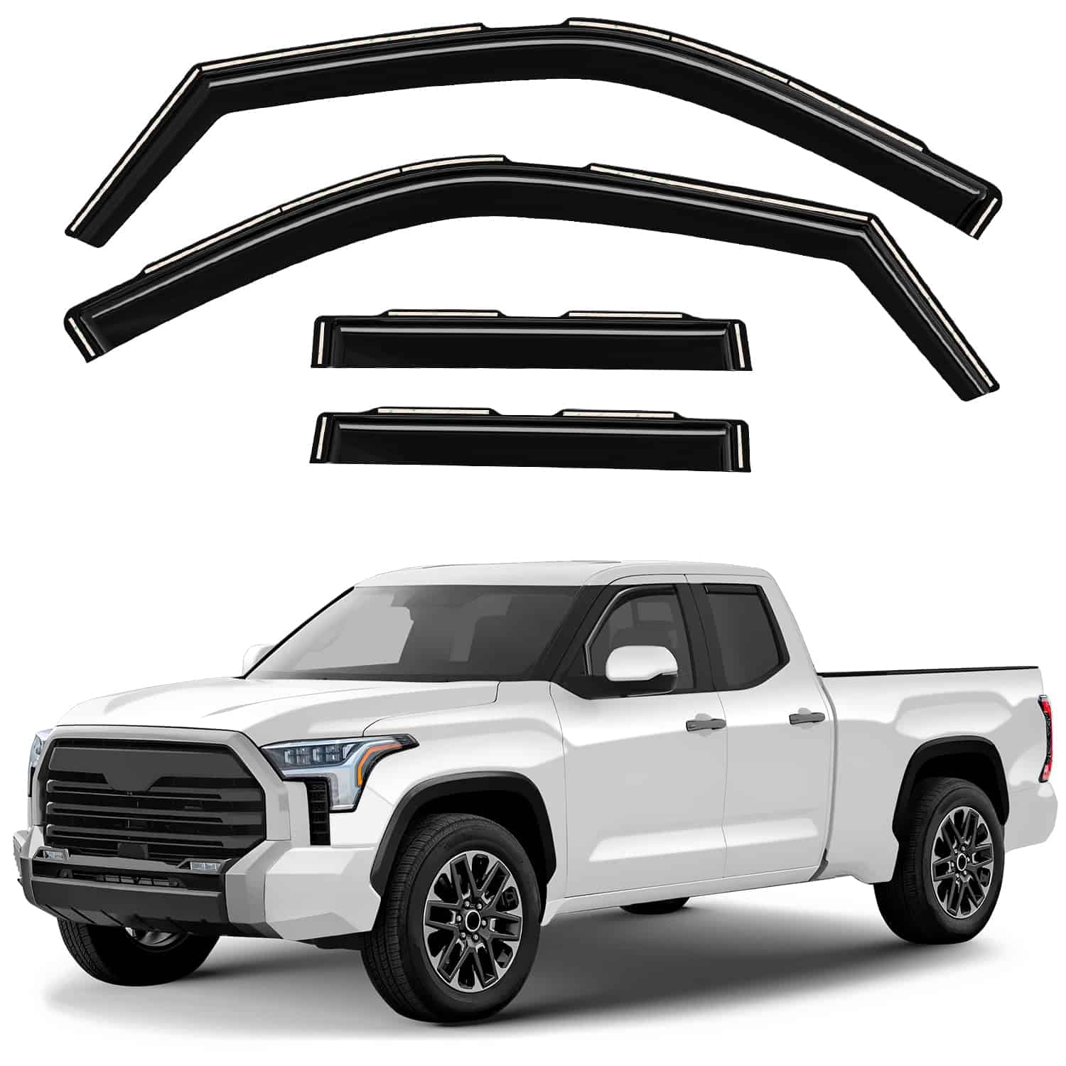 Los deflectores de ventana originales de GrandWheel están fabricados con policarbonato. Otros utilizan material acrílico que no puede ser tan flexible y duradero como el policarbonato. Los deflectores de ventana de GrandWheel están diseñados utilizando tecnología de vanguardia para reducir el ruido, desviar la lluvia y mantener la cabina fresca. El conjunto de 4 piezas viene con cinta 3M fácil de instalar y manual de instalación. Especificaciones: – Condición: 100% Nuevo; – Compatible con: Tundra 2022-2025 Doble Cabina; – Paquete incluye: 4 piezas de viseras de ventana (2 delanteras/2 traseras), almohadilla de preparación, manual de instalación; – Color: Tintado en negro ahumado; – Material: Policarbonato de alta calidad. Características: – Aire fresco incluso en días de lluvia; – Reduce el deslumbramiento del sol; – Instalación fácil; No se requiere perforación; – Instalación en canal; – Ajuste personalizado.