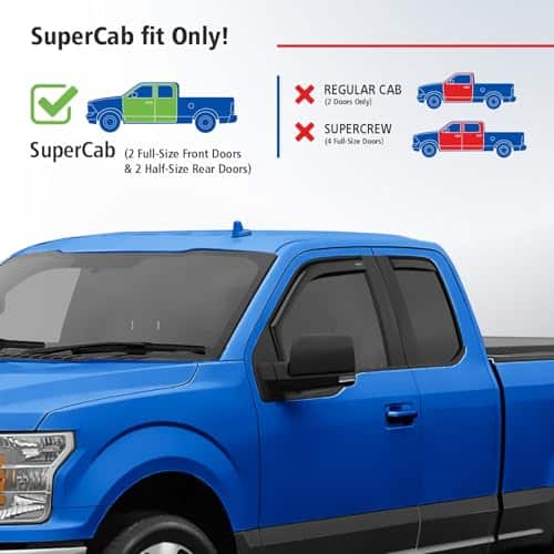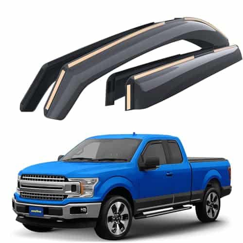 1. ¡Atención! El deflector de ventilación solo se ajusta a Ford F-150 2015-2020 SuperCab, Ford F-150 Raptor 2017-2020 SuperCab, Ford F-250 Super Duty 2017-2022 SuperCab, Ford F-350 Super Duty 2017-2022 SuperCab, Ford F-450 Super Duty 2017-2022 SuperCab, Ford F-550 Super Duty 2017-2022 SuperCab (no es compatible con Ford F-150 2021-2025). 2. Los deflectores de ventanas laterales premium de Goodyear le permiten bajar la ventana en la lluvia, vientos fuertes, nieve y hielo. Estos visores de ventanas para autos mantienen que no se moje mientras disfruta de aire fresco. Hechos de material irrompible y duradero de alta calidad. El protector contra la lluvia no se agrietará, romperá ni astillará. 3. La instalación en el canal proporciona un ajuste perfecto y un aspecto elegante para su automóvil. Asegúrese de que los deflectores en canal de Goodyear sean resistentes al agua y duraderos en todas las condiciones climáticas. Y ciertamente no se caerán en la carretera. 4. El color creat fue elegido el mejor para la protección solar. Combina bien con todos los estilos y colores de vehículos. El color de este parasol se mantiene rico año tras año. Estos son accesorios de automóviles premium que mejorarán el valor de su camioneta, así como su disfrute y comodidad diarios. 5. Obtenga un regalo perfecto ahora mismo: se incluyen 2 marcos de matrícula de Goodyear en el set. Todas las herramientas incluidas, sin perforaciones. Utilice el kit de montaje completo y siga las instrucciones para una instalación sin errores del deflector de viento. Tenga en cuenta que después de instalar, la ventana debe permanecer cerrada durante 72 horas. El visor de ventanas viene en una caja de color Goodyear protegida por una caja de envío marrón.