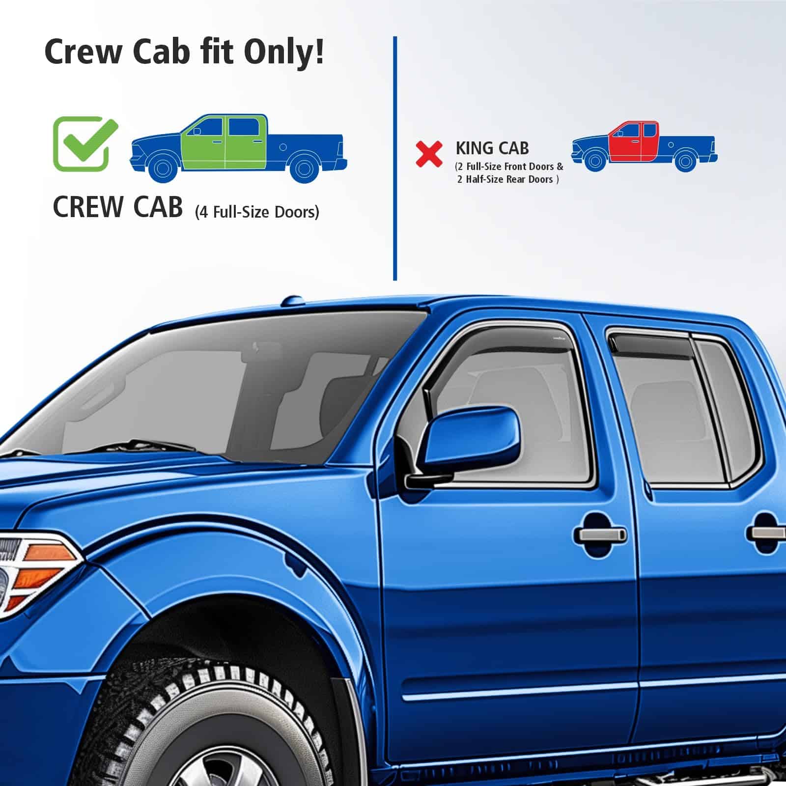 1. ¡Atención! El deflector de ventilación solo es compatible con Nissan Frontier 2005-2021 Crew Cab, Suzuki Equator 2009-2013 Crew Cab.