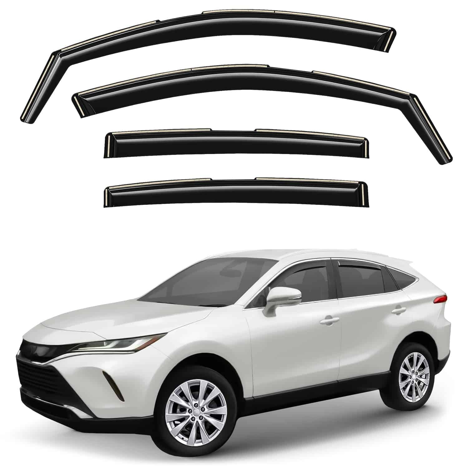 Los deflectores de ventanas originales de GrandWheel están fabricados con policarbonato. Otros utilizan material acrílico que no puede ser tan flexible y duradero como el policarbonato. Los deflectores de ventanas GrandWheel están diseñados utilizando tecnología de vanguardia para reducir el ruido, desviar la lluvia y mantener la cabina fresca. El juego de 4 piezas viene con cinta 3M fácil de instalar y manual de instalación. Especificaciones: – Condición: 100% nuevo; – Compatibilidad: para Toyota Venza 2021-2025; – El paquete incluye: 4 deflectores para ventanas (2 delanteros/2 traseros), almohadilla de preparación, manual de instalación; – Color: Tintado de negro ahumado; – Material: Policarbonato de alta calidad. Características: – Aire fresco incluso bajo la lluvia; – Reduce el deslumbramiento del sol; – Fácil instalación; No se requiere perforar; – Instalación en el canal; – Ajuste personalizado.