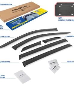 Además, al adquirir este conjunto, recibirá un regalo adicional: 2 marcos de matrículas de Goodyear. Todas las herramientas necesarias están incluidas en el kit de montaje, por lo que no se requiere perforación. Siga las instrucciones para una instalación sin errores del deflector de viento y asegúrese de mantener la ventana cerrada durante 72 horas después de la instalación. El visor de ventana se enviará en una caja de color Goodyear protegida por una caja de envío marrón para su mayor seguridad durante el transporte.