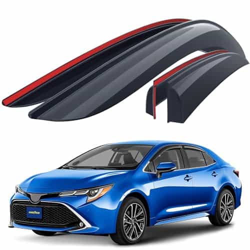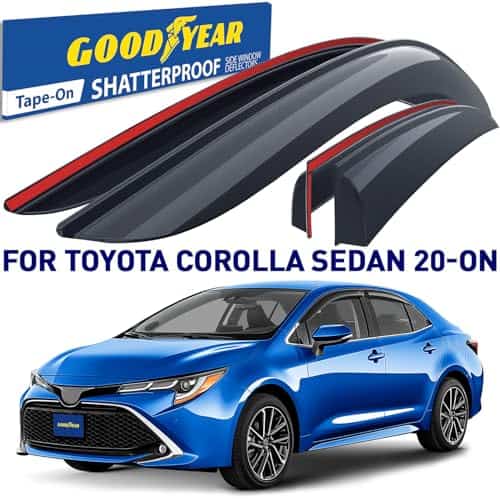 Los deflectores de ventanas Goodyear están diseñados específicamente para Toyota Corolla Sedán 2020-2025 y te permiten disfrutar de aire fresco incluso cuando está lloviendo, ventoso, nevado o helado. Son fabricados con material irrompible de alta calidad que garantiza durabilidad a lo largo del tiempo. La instalación es rápida y sencilla, ya que no se requieren herramientas complicadas. La cinta 3M VHB proporciona un agarre seguro y resistente a todas las condiciones climáticas. El color premium garantiza una protección solar efectiva y se adapta a la mayoría de estilos y colores de vehículos. Además, este set incluye 2 marcos de matrícula Goodyear, que son fáciles de instalar con un simple pegado. Estos deflectores de ventanas laterales son el regalo perfecto para cualquier amante de la conducción con la ventana abajo, y vienen en una atractiva caja de color Goodyear.
