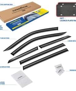 5. Obtén un regalo perfecto ahora mismo: se incluyen 2 marcos de matrícula de Goodyear en el set. No se necesitan herramientas, simplemente pela y pega estos visores de ventilación de ventana para la lluvia. Incluimos toallitas desengrasantes para que la tarea sea rápida. Este protector de ventilación es un excelente regalo de cumpleaños o regalo navideño para cualquier persona a la que le guste conducir con la ventana abierta. Los deflectores de ventanas laterales vienen en una caja de color Goodyear protegida por una caja de envío marrón.