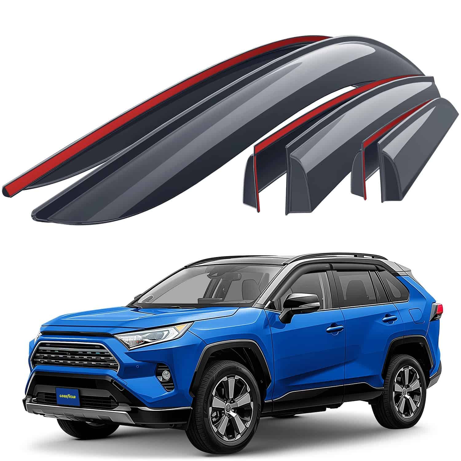 2. Los deflectores de ventana laterales premium de Goodyear le permiten bajar la ventana mientras llueve, hay vientos fuertes, nieve y hielo. Estos viseras de ventilación de ventana para autos le impiden mojarse mientras disfruta del aire fresco. Hecho de material irrompible de alta calidad y duradero. El guardabarros no se agrieta, rompe ni astilla.