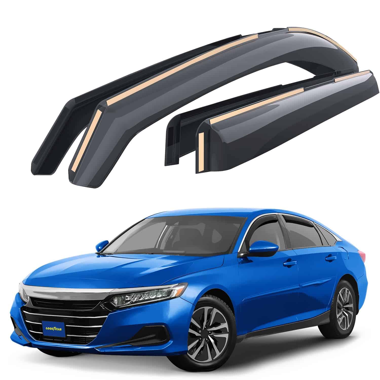 3. La instalación en el canal proporciona un ajuste perfecto y una apariencia elegante para tu automóvil. Asegúrate de que los deflectores en el canal de Goodyear sean resistentes al agua y duraderos en todas las condiciones climáticas. Y ciertamente no se caerán en la carretera.