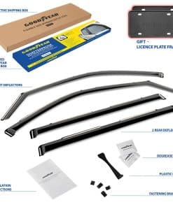 5. Obtenga un regalo perfecto ahora mismo: se incluyen 2 marcos de matrícula Goodyear en el set. Todas las herramientas incluidas, no se requiere perforación. Utilice el kit de montaje completo y siga las instrucciones para una instalación sin errores del deflector de viento. Tenga en cuenta que después de instalar, la ventana debe mantenerse cerrada durante 72 horas. La visera de la ventanilla viene en una caja de color Goodyear protegida por una caja de envío marrón.