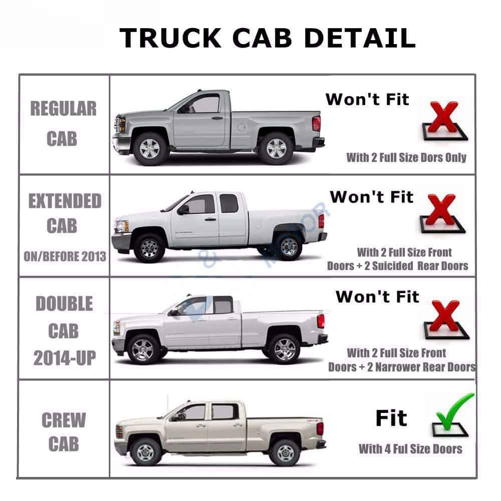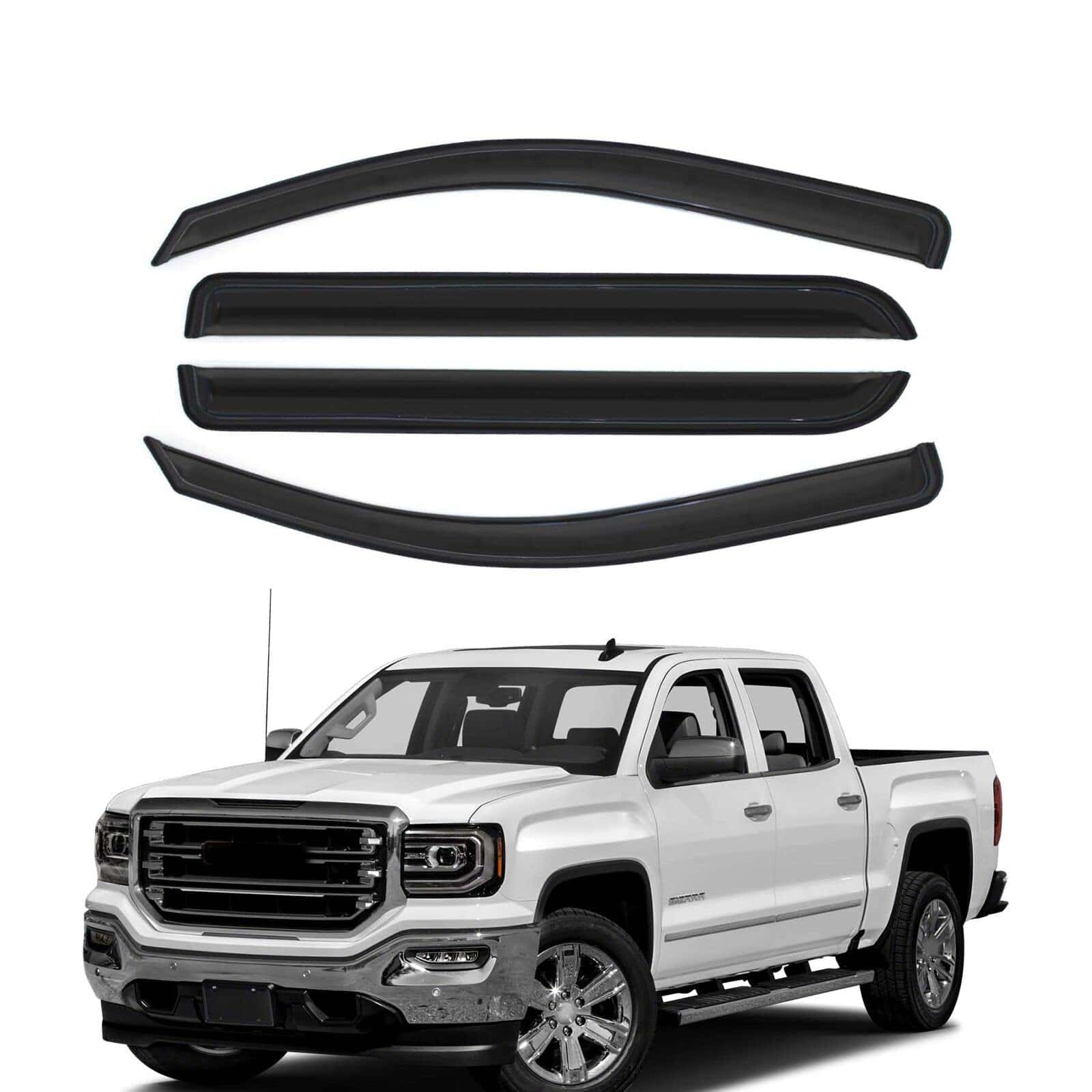 1. Deflectores de ventana compatibles con Silverado/Sierra Crew Cab 14-18 con 4 puertas de tamaño completo, Instrucciones de instalación no incluidas.
