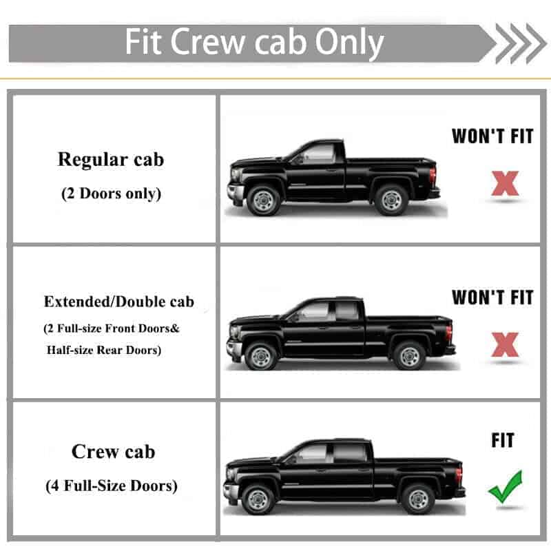 Fitment: 2019-2023 Sierra/Silverado 1500 Crew Cab (4 puertas de tamaño completo) Únicamente 2020 – 2023 Silverado / Sierra 2500 HD/3500 HD Crew Cab (4 puertas de tamaño completo) Únicamente Incluye: 1 juego de 4 deflectores de ventanas nuevos Características: A estrenar Color: Smoke Black Ubicación: Montaje exterior Textura del material: Acrílico reforzado Función: Permitir la entrada de aire fresco, mientras se mantiene la lluvia fuera Postventa: Período de garantía de 6 meses (calculado a partir de la fecha de realización del pedido).