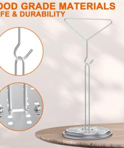 DELSbbq Turkey Fryer Stand Kit Wire Handle Lifter Hook, Perforated Turkey Fryer Hook and Stand Set Turkey Chicken Fryer Accessory Kit for Poultry Deep Frying Pot. The Turkey Fryer Stand Kit can filter the residue and prevent scorching, making your chicken tender and juicy. Made of high-quality food-grade materials, with a smooth surface and rust-proof, ensuring healthy and safe cooking, light, long service life, and easy to move. Dishwasher safe. The included lifting hook makes it easy and safe to move the turkey from the hot cooking oil. The poultry rack allows the heat to surround the turkey, heating it evenly to get a crispy and tender roast, and grill off excess grease. Can be used with gas and charcoal grills, and in standard-sized kitchen ovens. Upright grilling produces a restaurant-style smoky flavor for your chicken. Package includes 1 turkey rack, 1 lifting hook, and some screws and nuts.