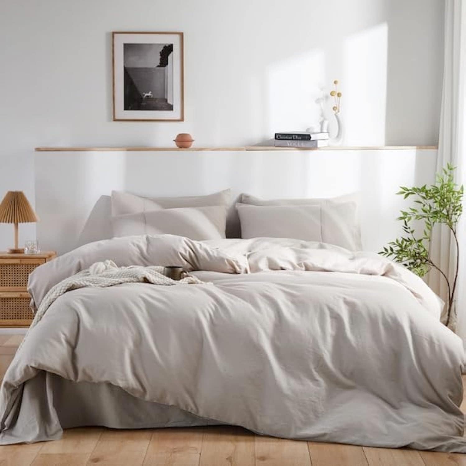 Delynvan 100% Funda de Edredón de Lino King – Juego de