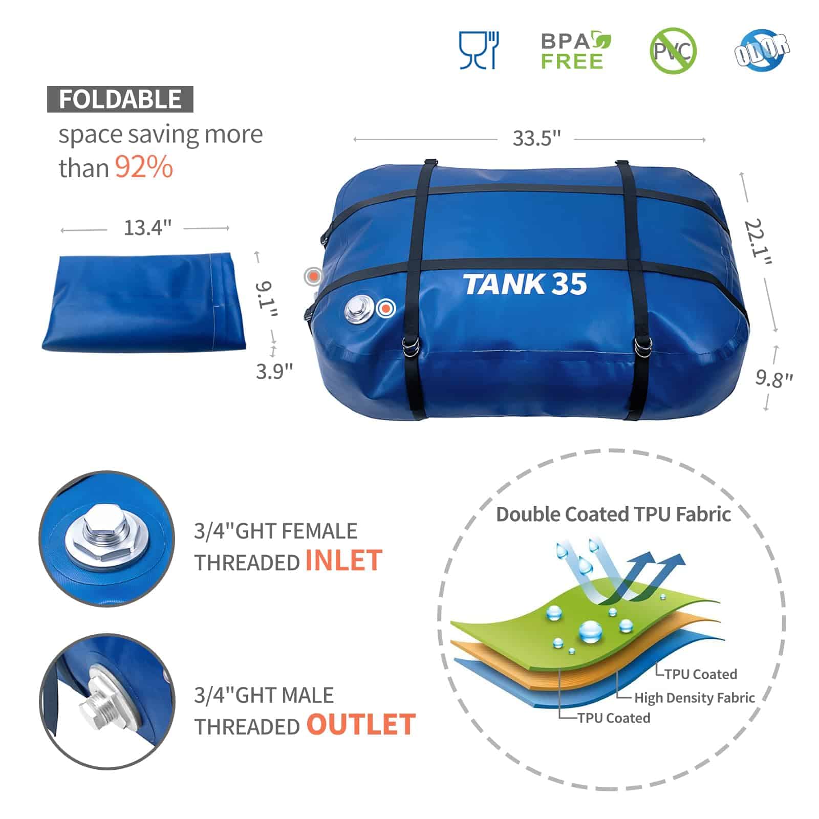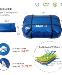 El Depósito de Agua ITRAZ es una solución ligera y versátil para el almacenamiento de agua en emergencias y en el hogar a largo plazo. Es ideal para varios usos, incluyendo emergencias, almacenamiento de agua en el hogar, camping en RV, cabañas y ubicaciones de evacuación.