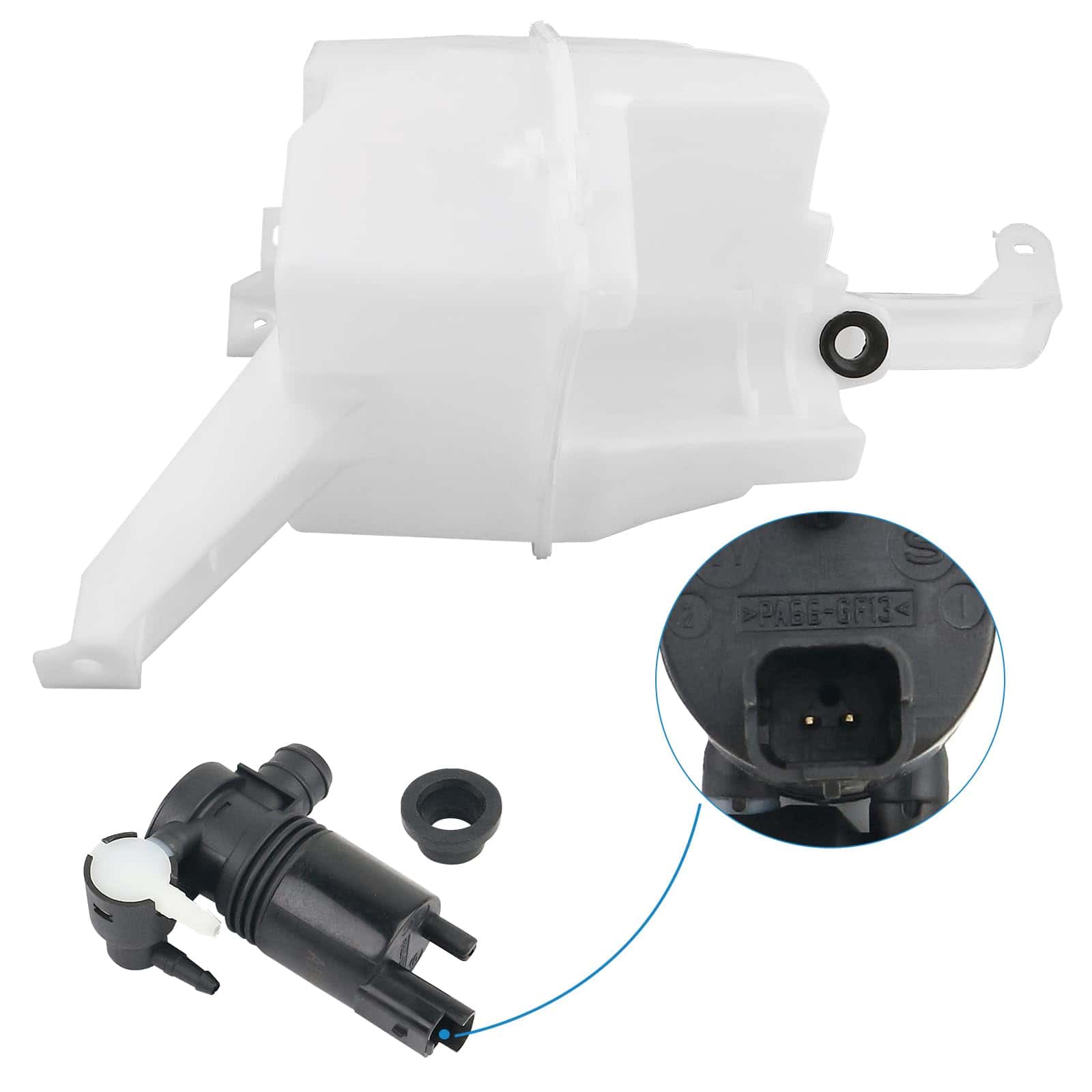 Depósito de líquido limpiaparabrisas con bomba y tubo compatible con Nissan Rogue Sport S SV SL 2017-2021. Repuesto de alta calidad con los números de parte 28910-6MA1A, 289106MA1A. Hecho con materiales de alta calidad y tecnología de producción profesional para un rendimiento estable y una larga vida útil. Fácil instalación que ahorra costos de reparación y mantenimiento.