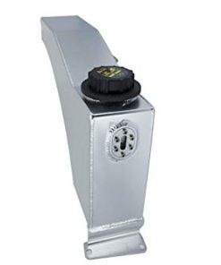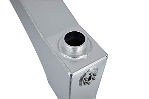 Depósito de recuperación de refrigerante del motor de aluminio con tapa para Ford 7.3L 1999-2003 (Pulido). Este depósito está fabricado con lámina de aluminio de grado aeroespacial, lo que asegura su durabilidad y resistencia. Diseñado para ajustarse directamente en los modelos Ford 7.3L Powerstroke del año 1999 al 2003, este depósito es un reemplazo directo que no requiere modificaciones. Cuenta con un vidrio de visión que facilita la indicación del nivel de refrigerante. Con una capacidad de refrigerante superior en más del 40% respecto al tanque degas original, este depósito es una excelente opción para mantener el sistema de refrigeración de su vehículo en óptimas condiciones.