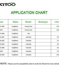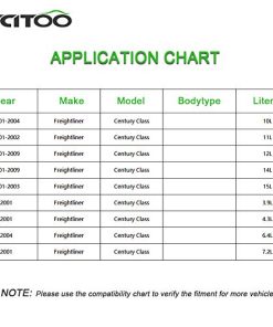 – 100% nuevo, nunca reacondicionado. – Construido según estrictos estándares de control de calidad. – Instalación fácil, no necesita hardware adicional. Aplicación: Freightliner Century Class 2001-2009 Freightliner Columbia 2003-2009. Incluye: 1 Botella de depósito de refrigerante. Notas: Por favor, asegúrese de que este sea el tipo de aplicación correcto del depósito de refrigerante antes de realizar el pedido.