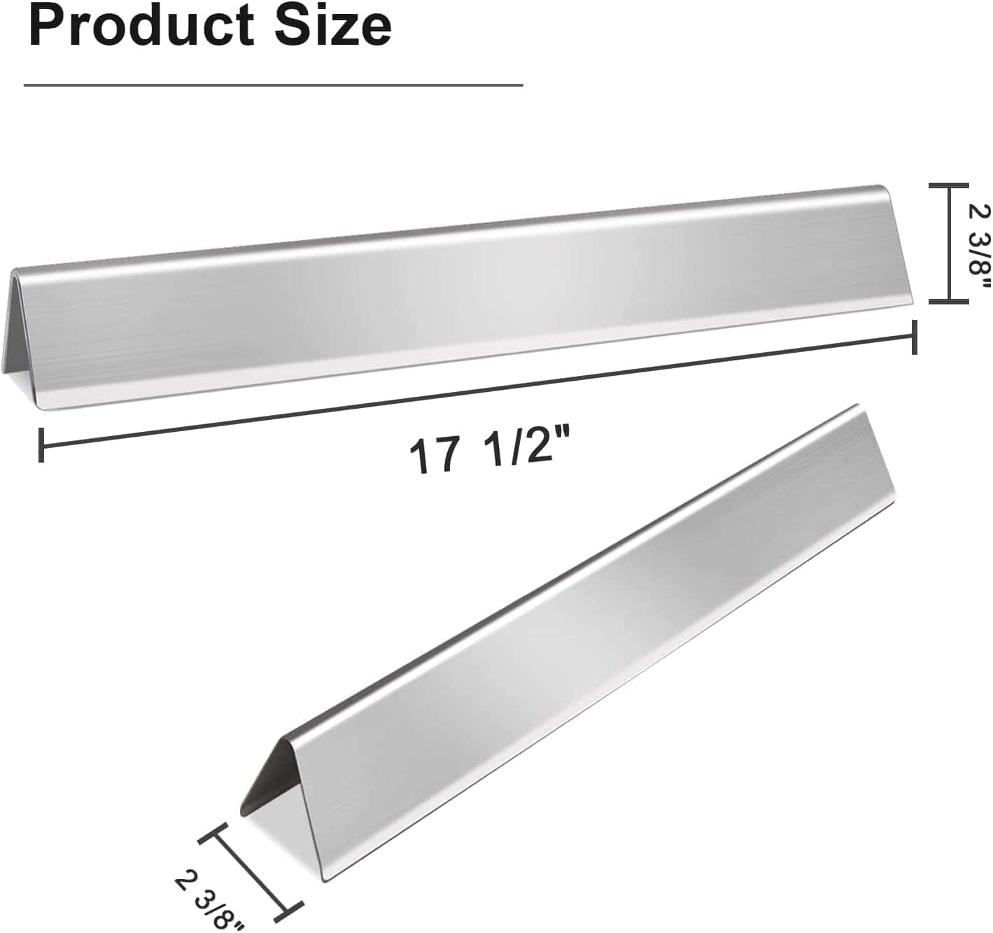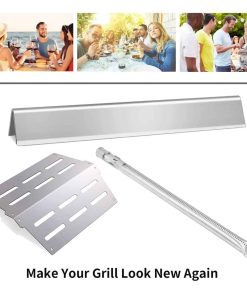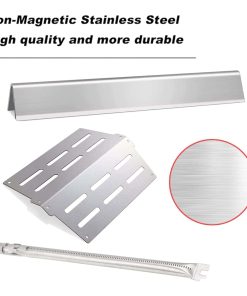 3. 5 Barras saborizantes de acero inoxidable de 17 1/2″ x 2 2/8″ x 2 3/8″, Weber 7620, 7621, 7622, 7629, 65505, 56514; Quemador de parrilla de acero inoxidable de 19 1/2″ de largo cada tubo, Weber 62752; 2 Deflectores de calor de acero inoxidable de 13 1/4″ x 8 3/4″, Weber 65505, 7622, 62756.