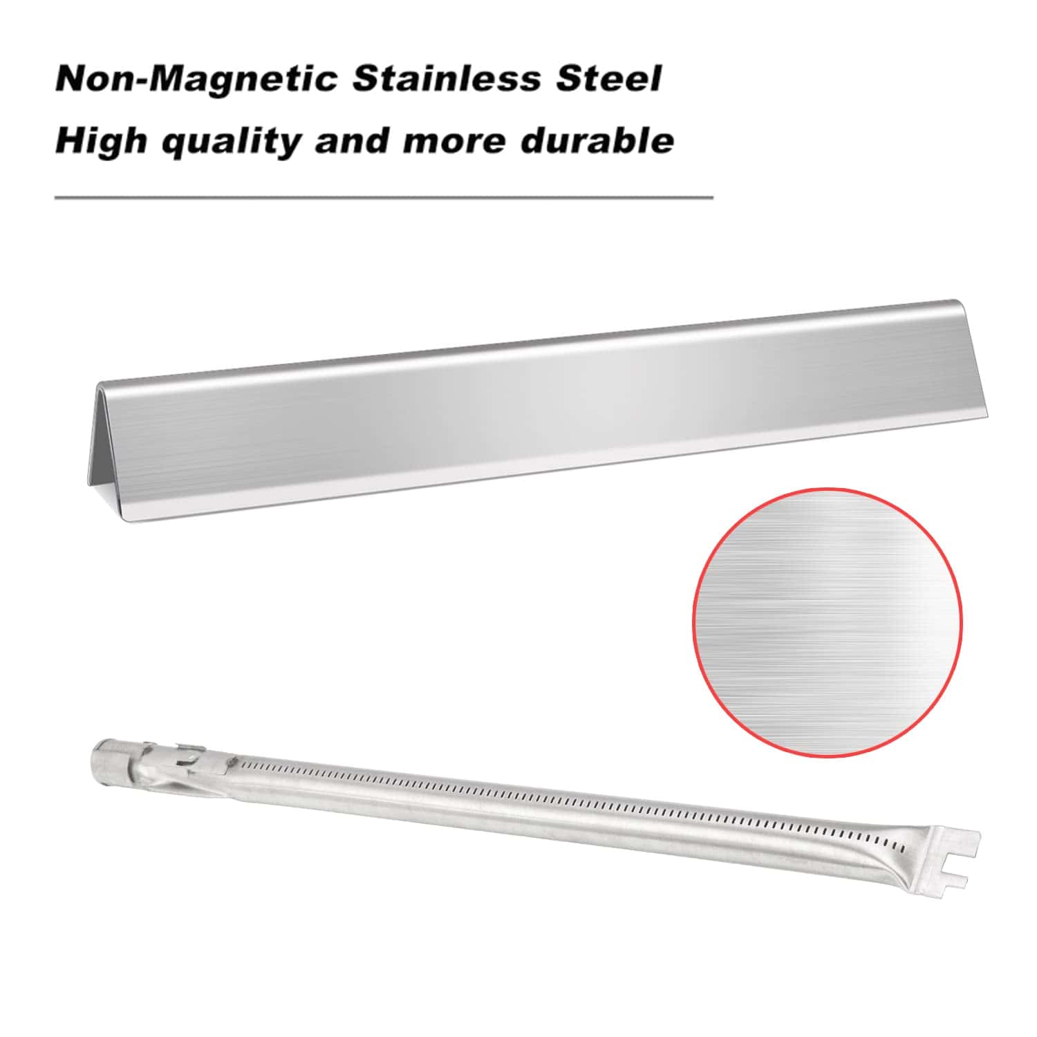 Kit de piezas de reemplazo para parrilla Weber Genesis 300 Series Gas Grill que se ajusta perfectamente a los modelos Weber Genesis 300 Propano (LP) Series (2011-2016) con panel de control frontal, incluyendo Weber Genesis E310, S310, E320, S320, E330, S330, EP310, EP320, EP330, CEP310, CEP320, CEP330. También es un conjunto de reemplazo ideal para los modelos Weber 6511001, 6511301, 6512001, 6519009, 6519399, 6522301, 6531001, 6532001, 6532301, 6550001, 6570001, 6631001, 6631301, 6670001, pero NO es compatible con los modelos de parrilla a gas Genesis II o Genesis II LX300. Incluye 5 barras Flavorizer de acero inoxidable de 17 1/2″ y tubo de quemador de parrilla de acero inoxidable de 19 1/2″ cada uno. Las piezas de quemadores de bbq de acero inoxidable son superiores y duraderas, fabricadas con material de acero inoxidable resistente que es altamente resistente a la corrosión. Estas piezas no se astillan, deforman o se oxidan, ya que son mucho más sólidas y gruesas que otras en el mercado. ¡No dudes en reemplazar tus quemadores con este kit de piezas de reemplazo de alta calidad!