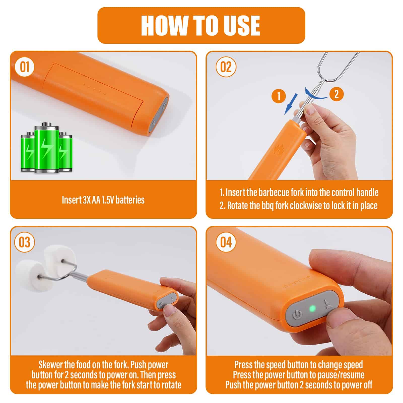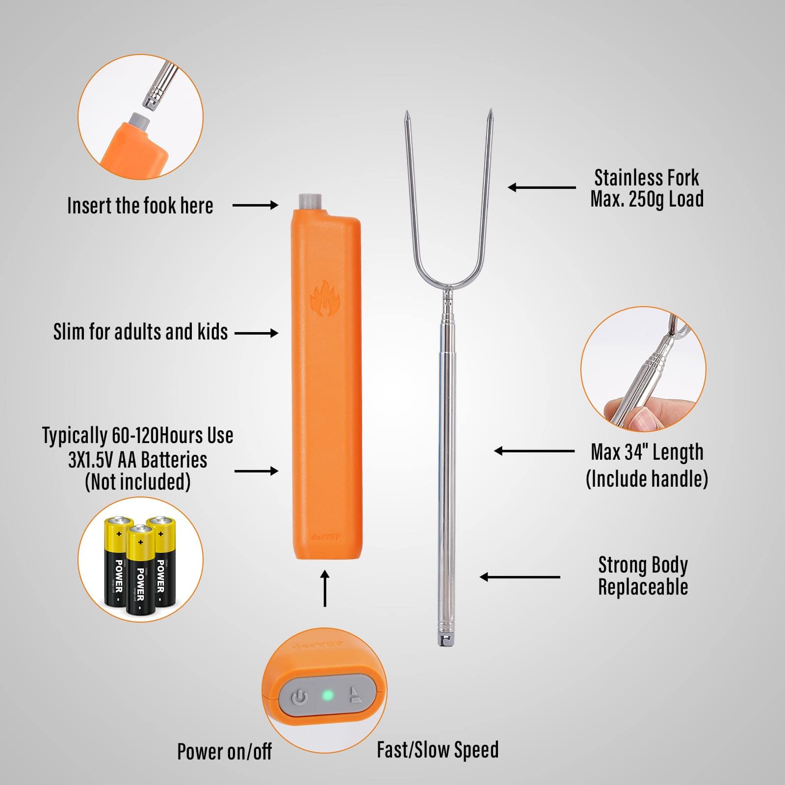 derYEP Palo Electrico para Asar, Tenedor Giratorio