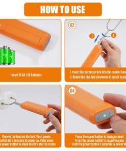 El derYEP Palo Electrico para Asar es la herramienta perfecta para todos los amantes de las parrilladas. Con su función de rotación automática, ya no tendrás que preocuparte por malvaviscos o salchichas quemadas. El tenedor telescópico desmontable de hasta 34 pulgadas te mantiene seguro del fuego y es fácil de bloquear o reemplazar. Construido para durar, este dispositivo funciona con 3 baterías AA que pueden durar entre 60 y 120 horas. La velocidad se puede ajustar de rápida a lenta, dependiendo de si estás empezando a cocinar o la comida está casi lista. Disponible en varios colores y con una forma delgada para un ajuste perfecto en la mano, el derYEP Palo Electrico para Asar es la elección ideal para tus parrilladas al aire libre.