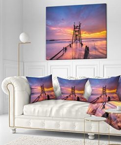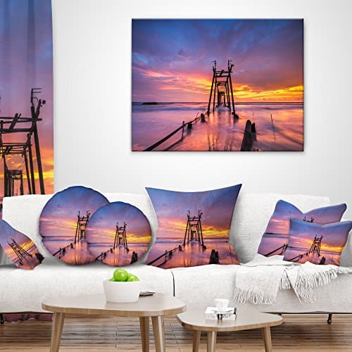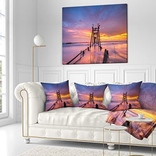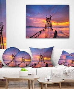 Designart Puente de Madera Rota al Atardecer’ Muelle