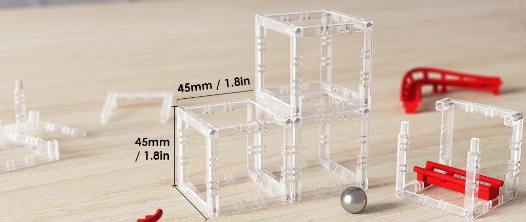 1. 127 PIEZAS SURTIDAS: 64x MagnetCubes, 32x Clip, 4x U-turn, 10x Straight, 10x Quarter-turn, 4x Down, 3x Marble. 2. ADHERENCIA SIN ESFUERZO: Sin necesidad de pegamento o conectores, MagnetCubes está listo para jugar directamente desde la caja. Cada cubo es completamente magnético, por lo que se puede conectar fácilmente a otros cubos. ¡Simplemente desempaca y construye! 3. CONSTRUIR. RECONSTRUIR. COMBINAR: Conéctate fácilmente a múltiples estructuras juntas. La estructura se convierte en un diseño complejo e impresionante de varios niveles. MagnetCubes te da mucha más libertad para construir una variedad casi infinita de mini montañas rusas y estructuras al instante. 4. APRENDIZAJE PRÁCTICO: MagnetCubes es una combinación de juego de lógica, carrera de canicas y juguete STEM. Este juego es perfecto para cualquier joven constructor que busque desarrollar la creatividad, mejorar la coordinación mano-ojo y solucionar problemas con la física básica. No solo mantiene entretenidos a los más jóvenes, sino que también fomenta el aprendizaje al mismo tiempo. 5. POSIBILIDADES INFINITAS: Con 64 cubos y varias piezas de acción, tendrás la capacidad de construir distintas pistas con imaginación y mente lógica. ¡Ideal para mantener tu mente ágil, flexible y, lo más importante, interesada!