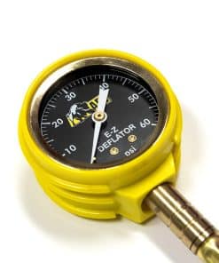 Mantener la presión de aire adecuada para el tipo de terreno en el que estás conduciendo es fundamental para el off-road. Cuanto menos presión de aire haya en tus llantas, más grande será la huella de contacto que tendrás, brindándote la mayor superficie posible para una tracción máxima en superficies blandas como nieve o arena. Una llanta con presión más baja también proporcionará considerablemente más tracción al subir sobre obstáculos porque la llanta puede conformarse a la superficie y agarrarse a lo que sea que estés intentando superar. Además, una presión más baja permite que el flanco de la llanta se flexione más para un paseo cómodo en el camino y un menor riesgo de daños en la llanta por piedras afiladas, raíces, etc. El Desinflador EZ de AEV te permite quitar rápidamente y de forma segura el núcleo de la válvula para una desinflado rápido de la llanta. Simplemente enrosca el Desinflador de llantas EZ en la válvula. Gira la perilla del desinflador en sentido antihorario para desenroscar el núcleo de la válvula. Luego desliza el collar hacia arriba para comenzar a liberar aire. Vuelve a deslizar el collar hacia abajo para detener el flujo de aire o para revisar tu presión de aire. Por último, enrosca de nuevo el núcleo de la válvula en la válvula y retira el Desinflador de llantas EZ. El Desinflador de AEV EZ ha sido diseñado y probado para garantizar precisión, sin ser afectado por la temperatura, humedad o altitud. Un protector de goma amarillo de alta visibilidad protege el dial fácil de leer que muestra la presión de aire de 0-60 PSI en incrementos de 1 PSI. Se incluye una práctica bolsa de almacenamiento para mantener seguro tu Desinflador EZ cuando no esté en uso.