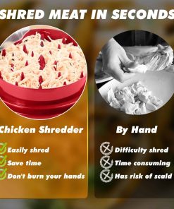 1. ¡NUEVO DESMENUZADOR DE POLLO 2024! Ya sea que prefiera la carne en forma de pollo finamente desmenuzado o en trozos de pollo, puede desmenuzarlo rápidamente al nivel de finura deseado con nuestro profesional desmenuzador de carne, tapa transparente y diseño de rotación mejorado. Con su plato separado, la herramienta de desmenuzado de carne de última generación desmenuza pechuga de pollo, cerdo, res y otros alimentos con facilidad.
